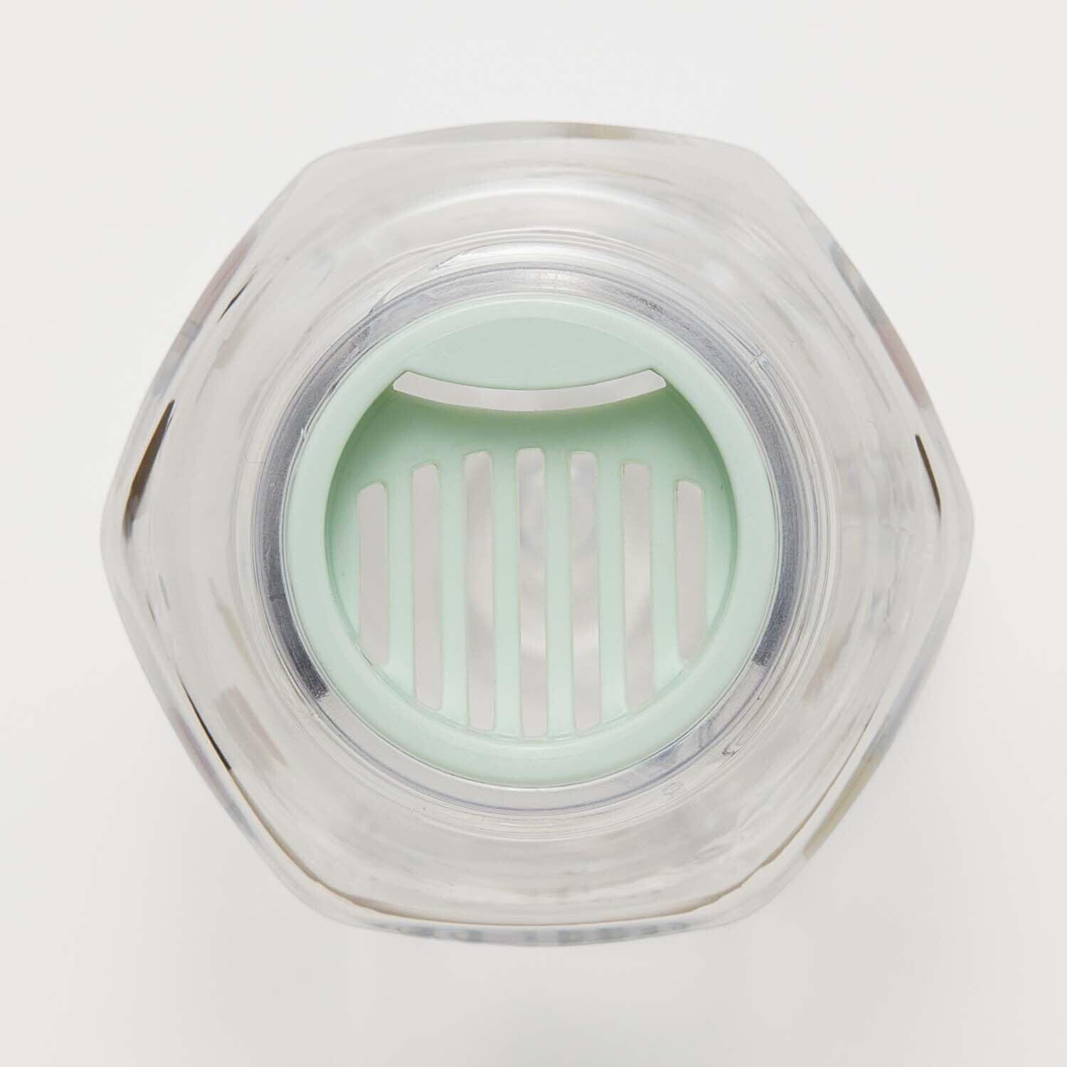 握りやすく、転がりにくい形状、六角形で軽くておしゃれな透明ボトル