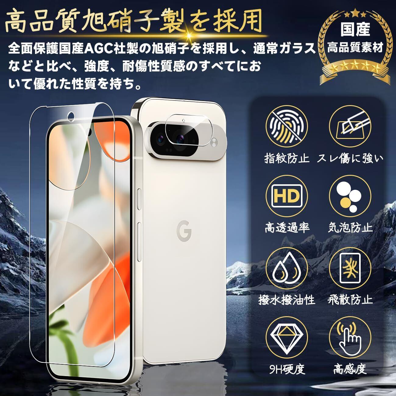 【専用設計·簡単に貼り付け】 本製品 Google Pixel 9 5G 専用液晶画面保護ガラスフィルムです。本商品は厳選した素材を採用して作られており、フィルムのシリコン自己吸着層があるので、スチールフィルムを携帯電話に合わせて軽く置くだけで、気泡が入らないように簡単に取り付けられます。(ポイント:フロントカメラのカメラ穴についてですが、ほこり・異物などの堆積を防止するため、ガラスフィルムにカメラ穴を開けていません。Seninhiのガラスフィルム 、透過率は99.9%なので、フロントカメラの正常使用に全く影響がありません。)*機種によってサイズが異なりますので、ご購入の場合に機種をよく確認してください。