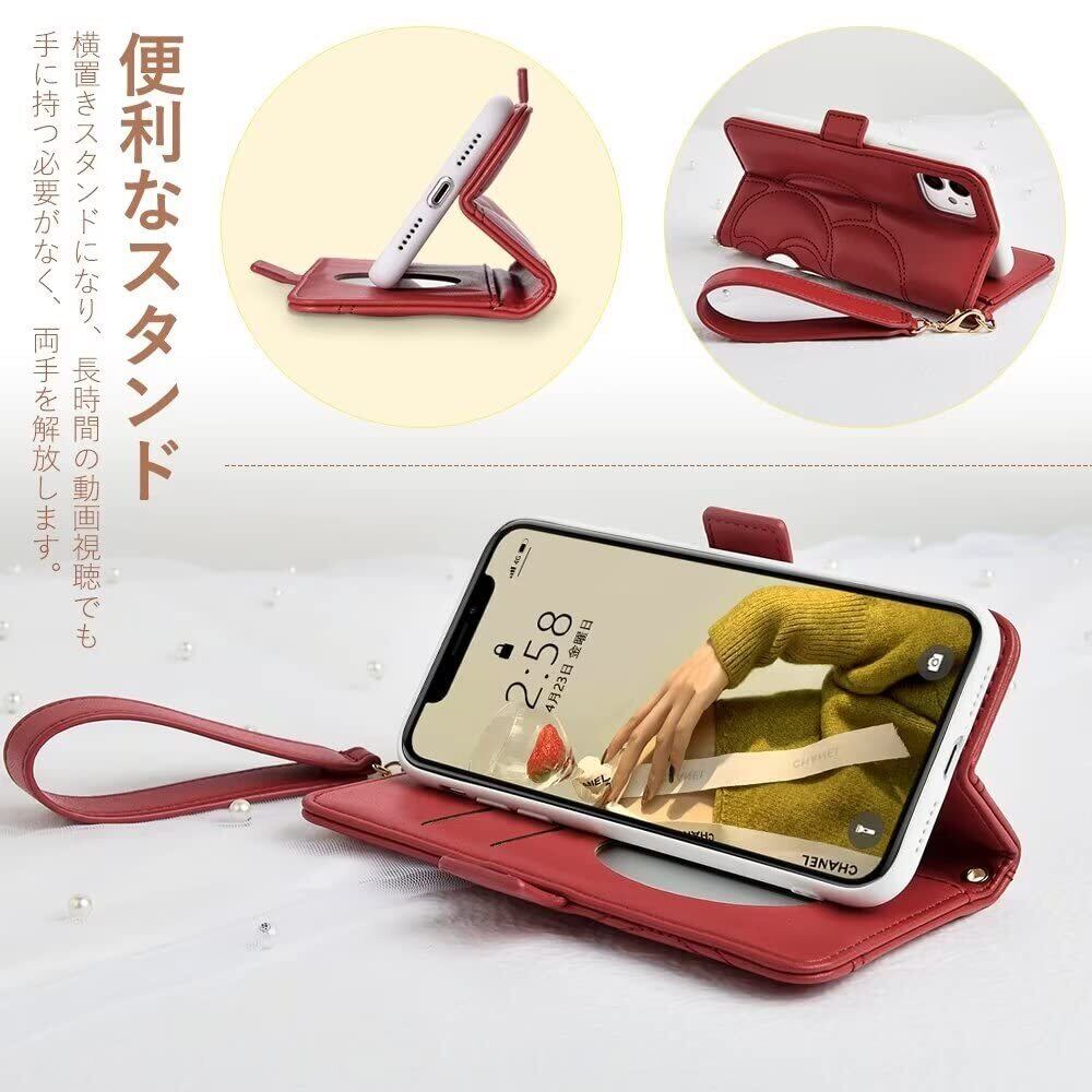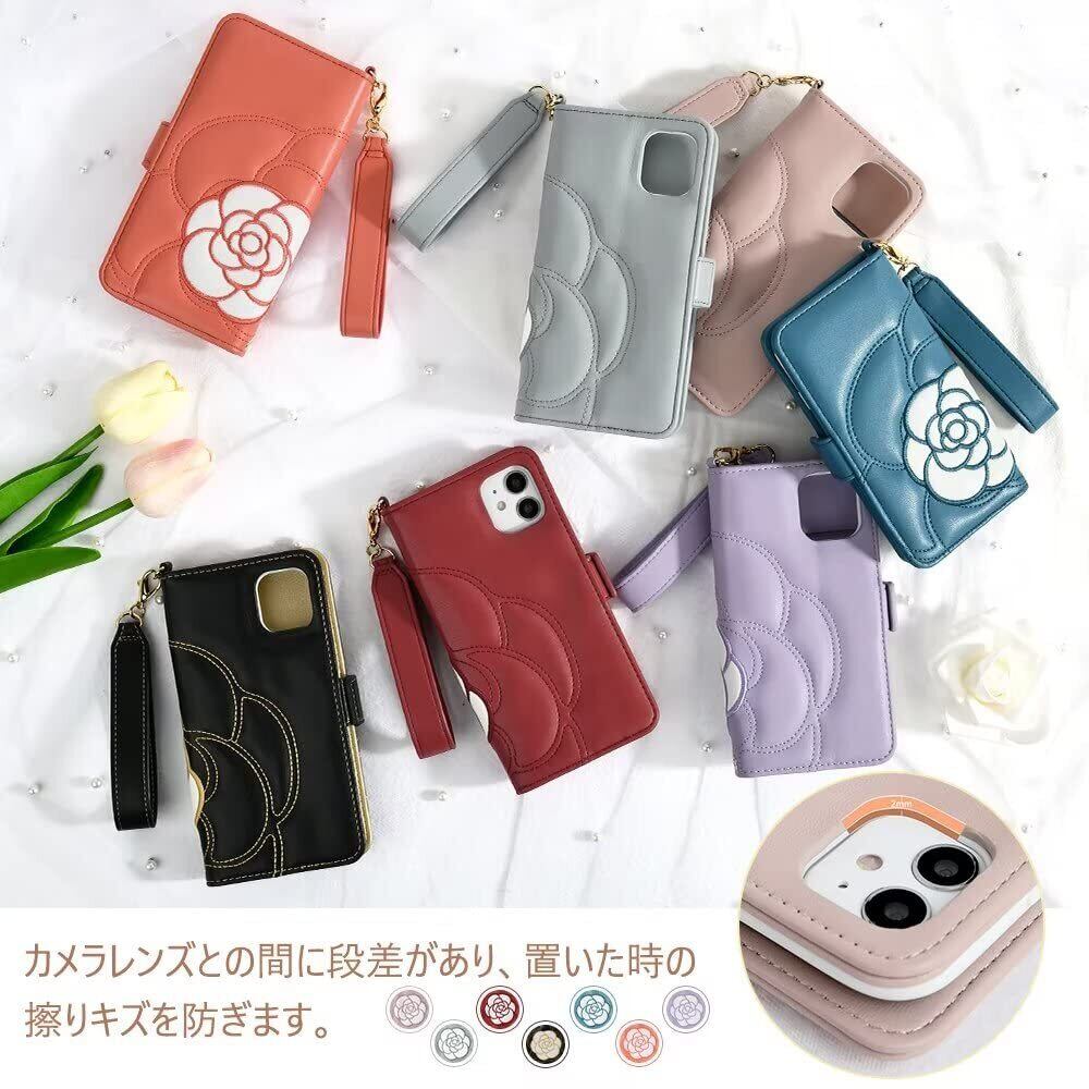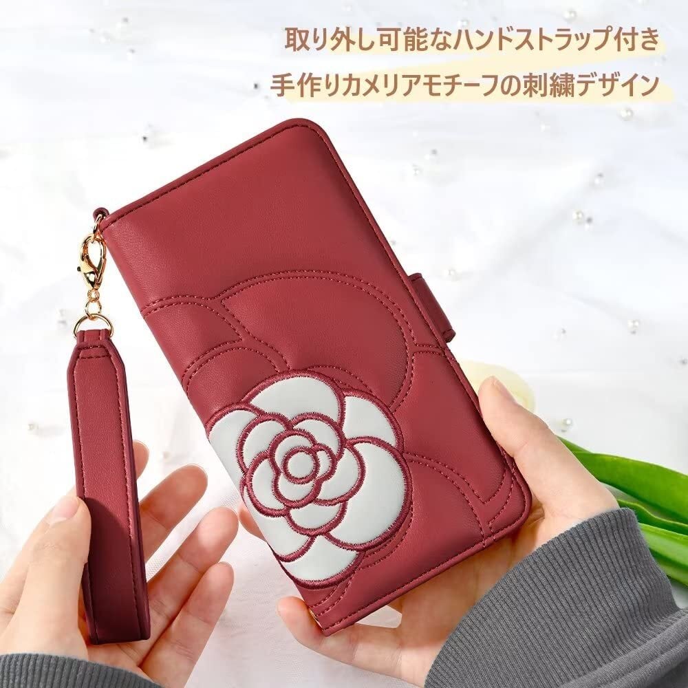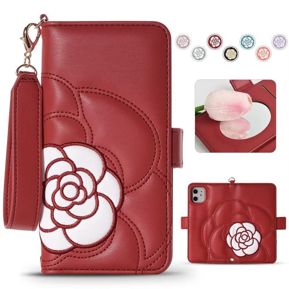 iPhone 12 手帳型 ケース かわいい iphone ケース 12 Pro 携帯カバー 手帳 可愛い 財布型 アイフォン 12 Pro 手帳型 ケース 女性 iPhone 12 プロ 手帳 ケース シンプル お洒落 山茶の花 刺繍 あいふぉん 12 手帳型 ケース カード収納 あいふぉん 12 プロ スマホケース ミラー付き 電話ケース(レッド)