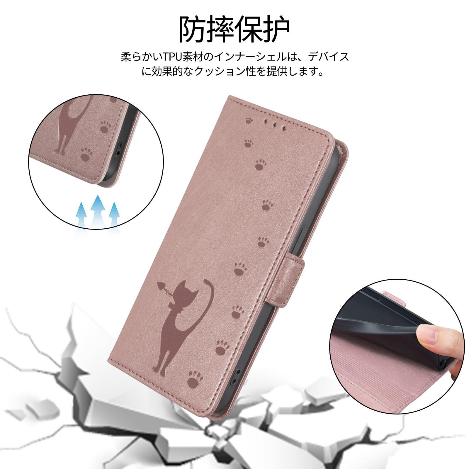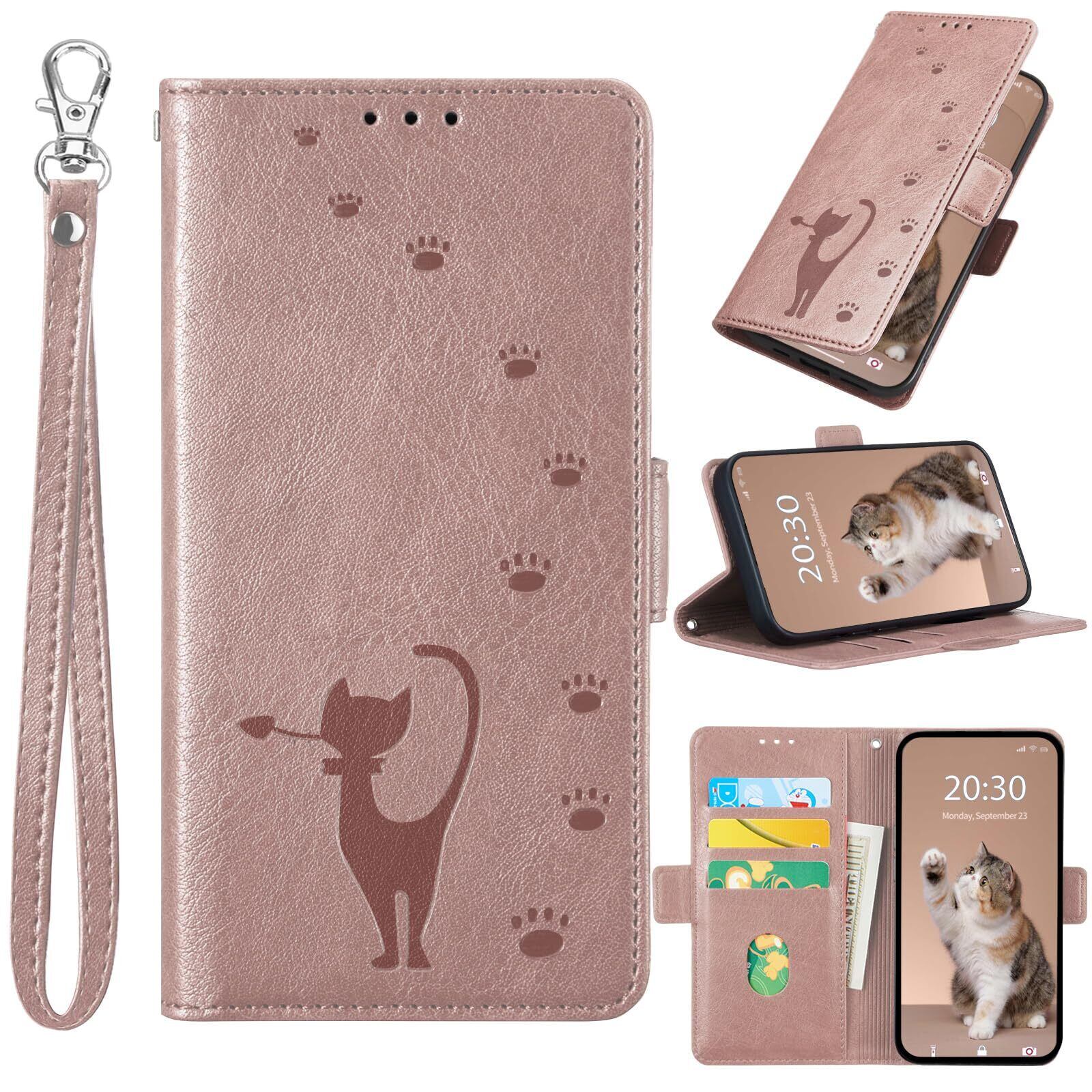 Google Pixel 8 ケース 手帳型 グーグルピクセル8 ケース google pixel 8 カバー 手帳型 googleピクセル8 ケース かわいい猫のスマホケース(リストストラップ付き) カード入れ収納 スタンド機能 プレミアムPUレザーフォンケース 財布型(ローズピンク)