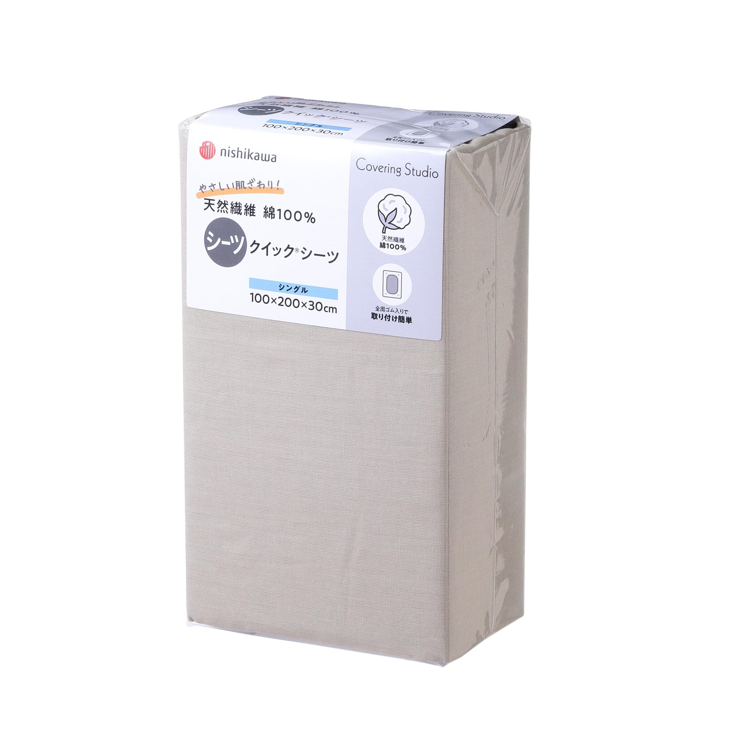 nishikawa【西川】 クイックシーツ シングル 洗える 肌に優しい触り心地の綿100% ボックスシーツ 装着簡単でずれにくい 無地 カバーリングスタジオ CT4007 ベージュ PK04280057