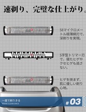 【剃り残しゼロ、肌に優しい】浮動ヘッドシステムと3枚刃のコンビネーションで、あご下やフェイスラインなど剃りにくい部分にもフィットし、しっかりと深剃り可能。肌への負担を抑えながら、理想的なシェービングを実現します。