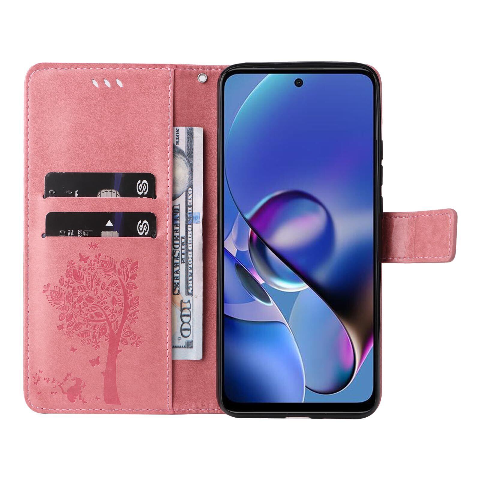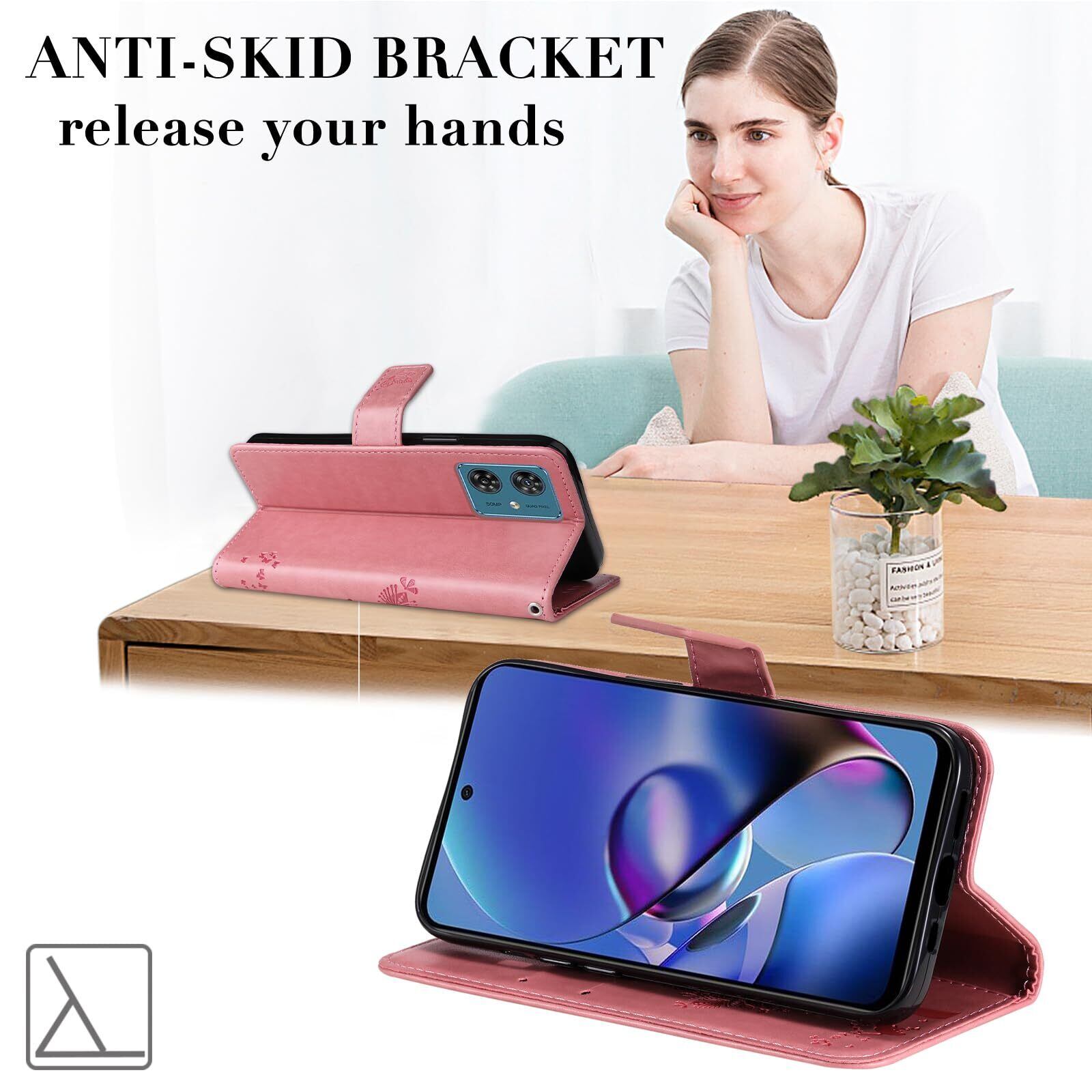 【Kawasina】 moto g64 5G ケース 手帳型 moto g64y 5G 手帳型ケース おしゃれ 猫 蝶々 内蔵マグネット カードポケット スタンド機能 モト g64 / g64y 5G ケース 防塵 軽量 耐衝撃 全面保護 ピンク