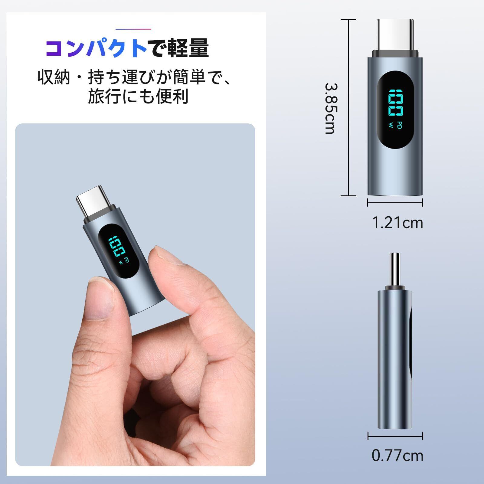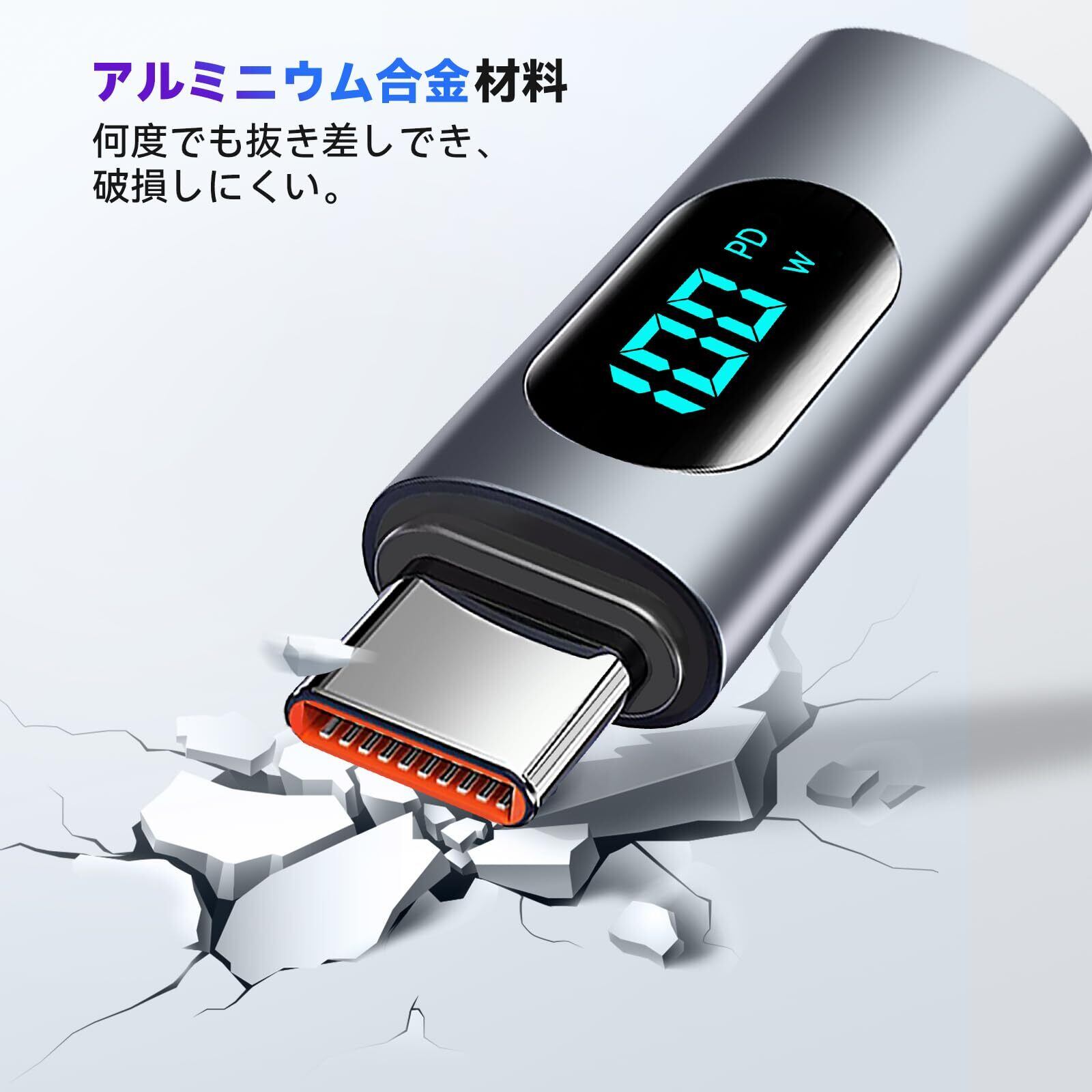【高品質素材】タイプC変換アダプターはアルミニウム合金製で、耐久性、耐腐食性、耐摩耗性に優れています。耐熱性と安全性に優れ、長期間使用できます。※※ご注意:長時間の高電力使用は製品の温度を上昇させますが、使用には影響ありませんのでご安心ください。100Wで連続使用した場合、製品の最高温度が60℃に達することがあります。