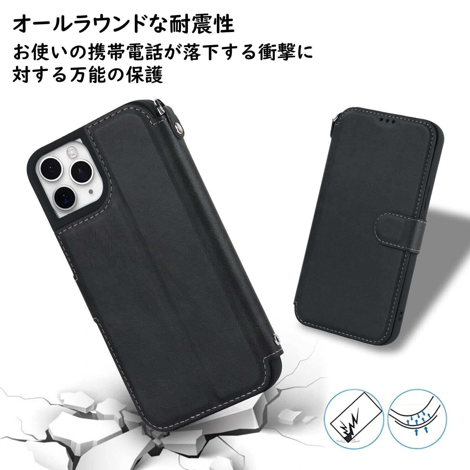 Havaya iPhone11Proケース iphone 11 pro ケース スマホケース 米軍MIL規格 軽薄 手帳型 ストラップ 耐衝撃 レンズ保護(アイフォン11プロ /あいふぉん11pro/いphone11pro/アイホン11プロ 5.8インチ対応)-ブラック