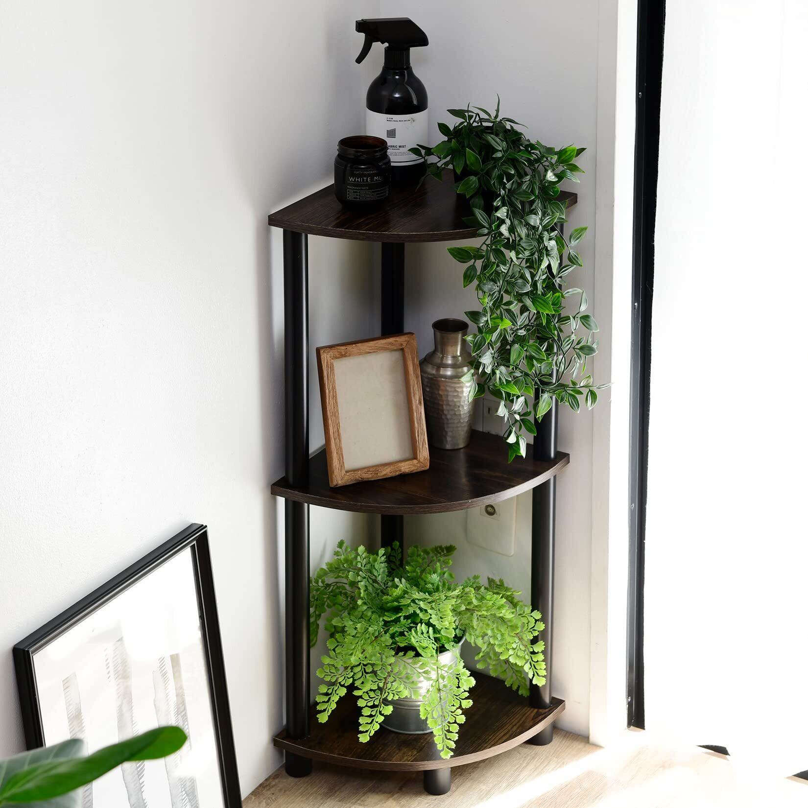 山善(YAMAZEN) ラック 棚 (スリム) A4対応 【組立かんたん】 3段コーナー 幅27×奥行27×高さ76cm ダークブラウン NSR-3C(DBR4/BK) 1人暮らし