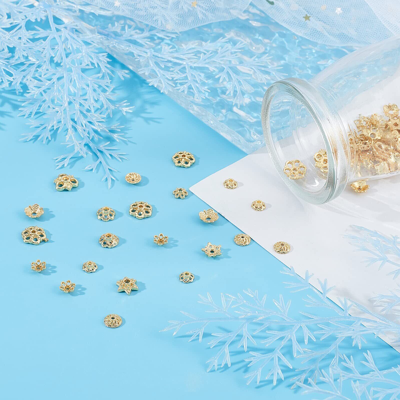 【精巧な細工】:18K鍍金ビーズキャップの表面は金属色で光沢があり、表面が非常に滑らかで、18k鍍金ビーズキャップが華やか見えるように作られています。