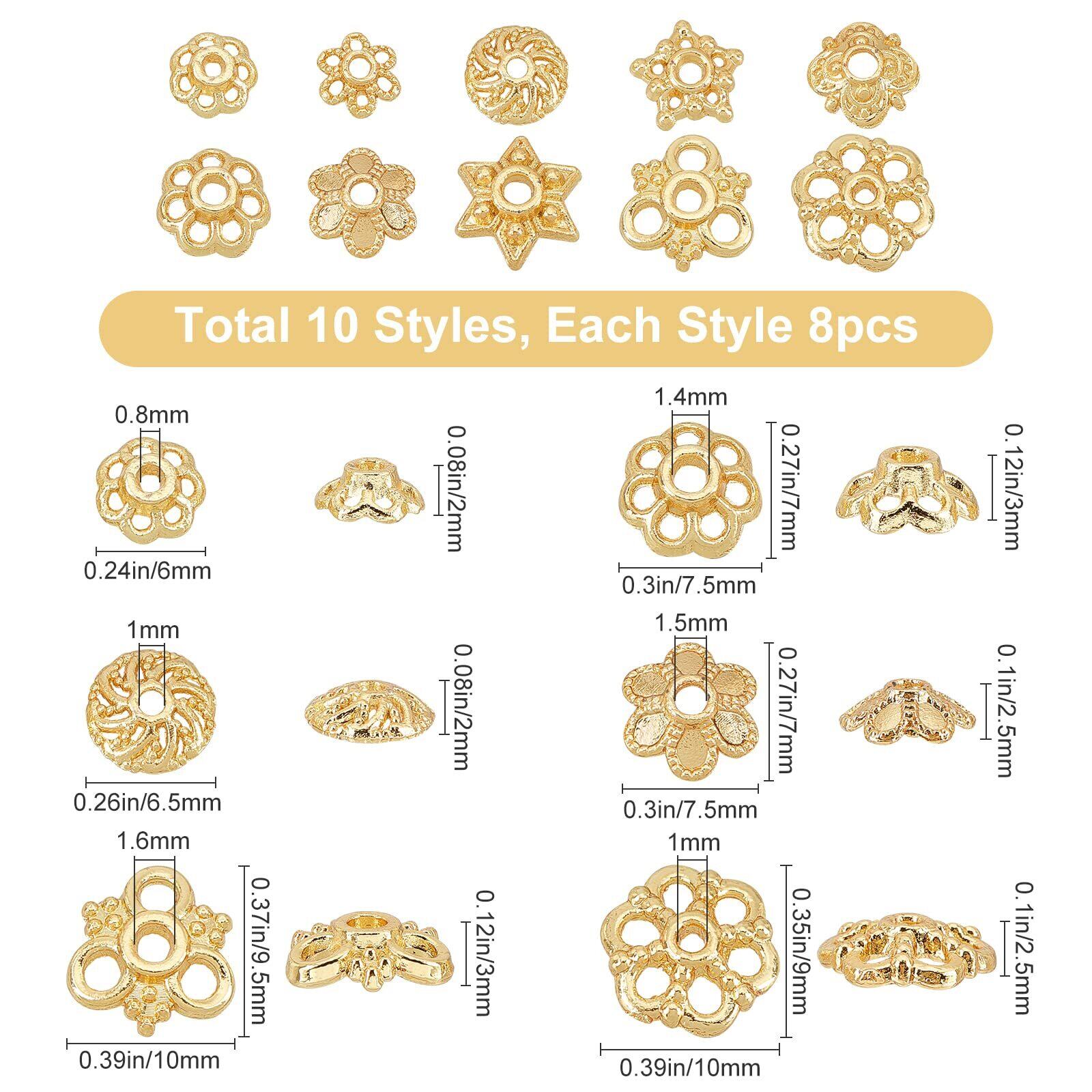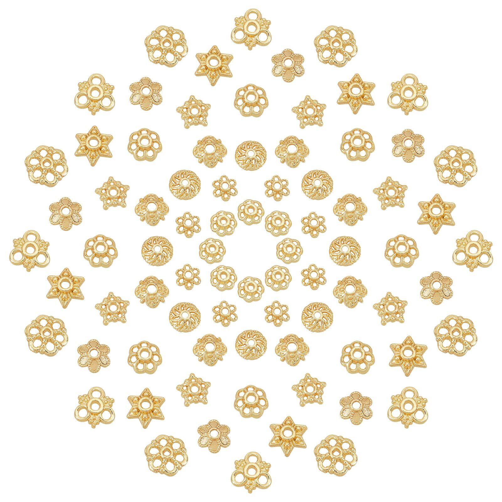 SUNNYCLUE 80個10種 18k鍍金 ビーズキャップ 花座 座金 ビーズ アンティークゴールド 金属色 鍍金 ビーズ キャップ 特別 花形 菊座 透かしキャップ 透かしパーツ スペーサービーズ フラワー チャーム アクセサリーパーツ 花状 チベット風 ビーズキャップ 花座金 ビーズキャップ ビーズカバー DIY用 18k 金色 ビーズ 割れ隠し 手芸用品 クラフト用品 ブレスレット ネックレス ルースビーズ チャームパーツ アクセサリーパーツ 基礎パーツ ジュエリー作り レディース デコキット クラフト手芸 手作りキット DIY飾り物