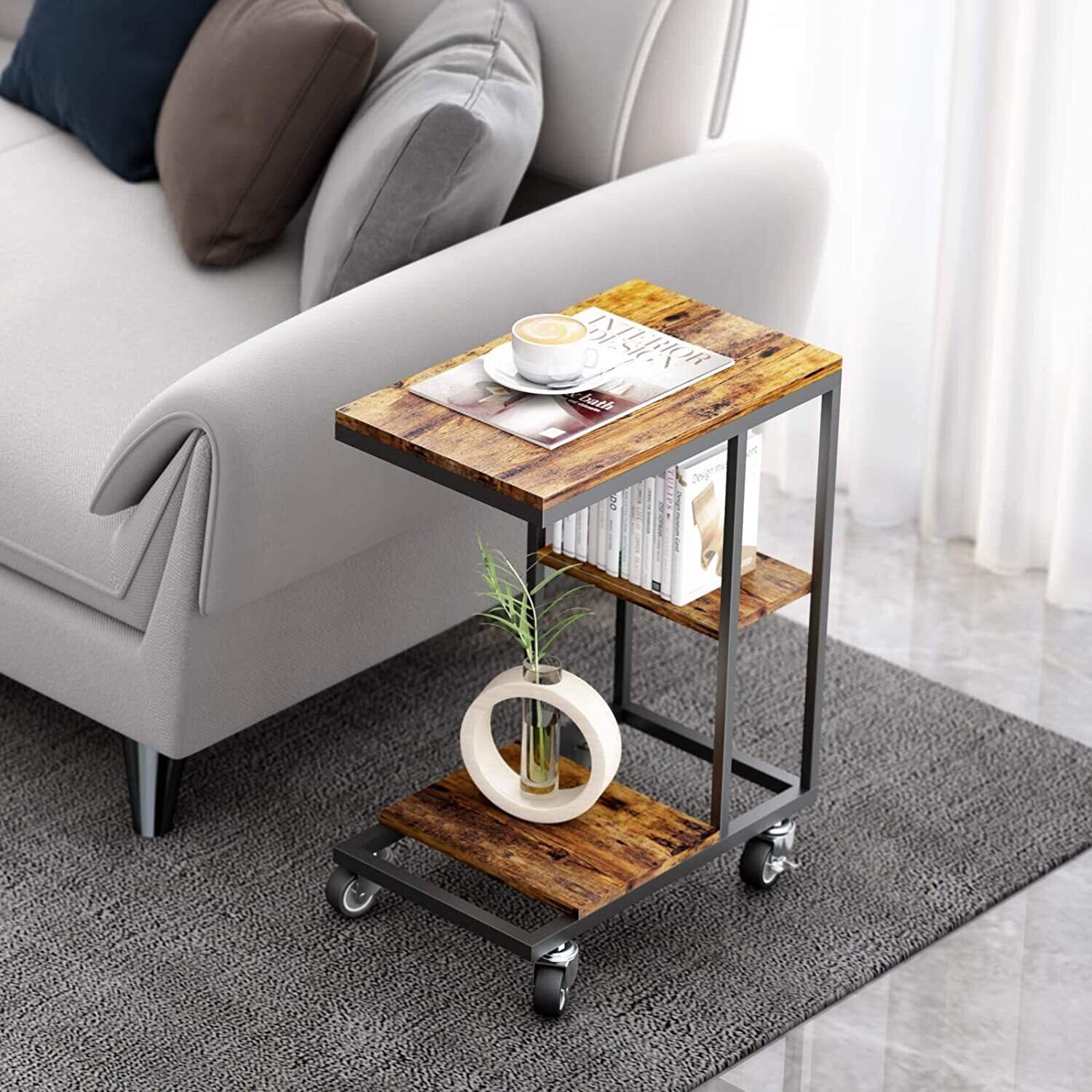 サイドテーブル キャスター付きコの字型デザイン ベッド リビングサイドテーブル ソファ おりたたみサイド キャスター付き テーブル サイドラック ベッド ビンテージ