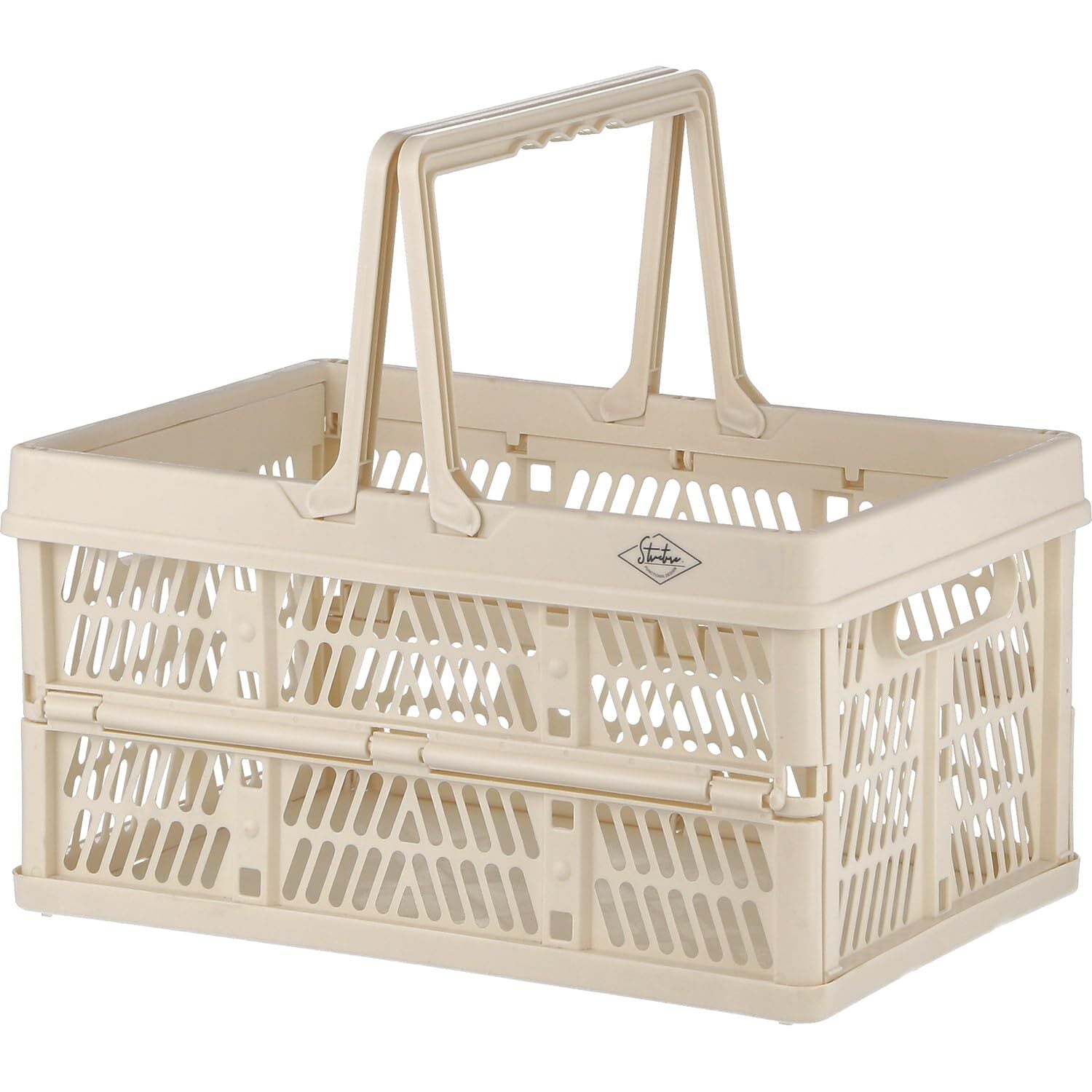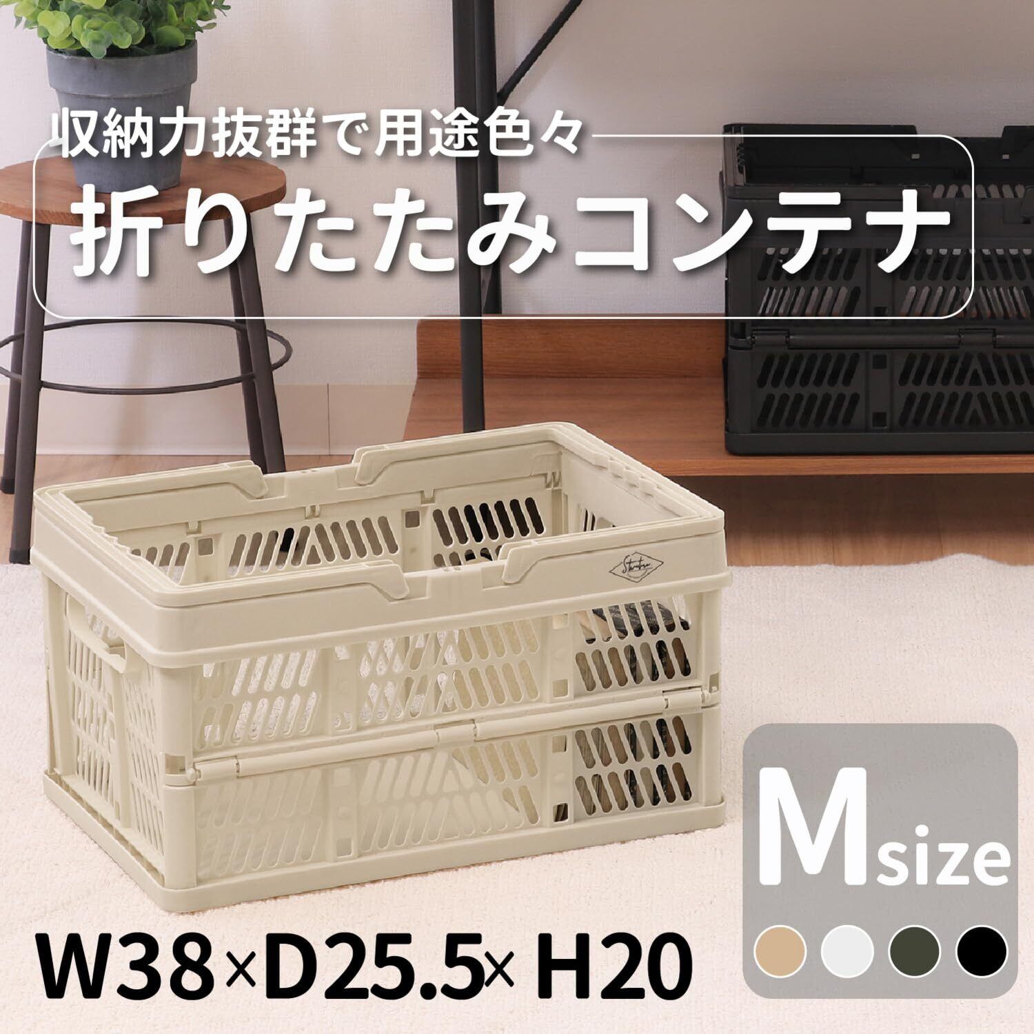 不二貿易(Fujiboeki) 折りたたみ コンテナ かご 幅38×奥行25.5×高さ20㎝ ホワイト 取っ手付き 持ち運び簡単 内容量15L Mサイズ 86444