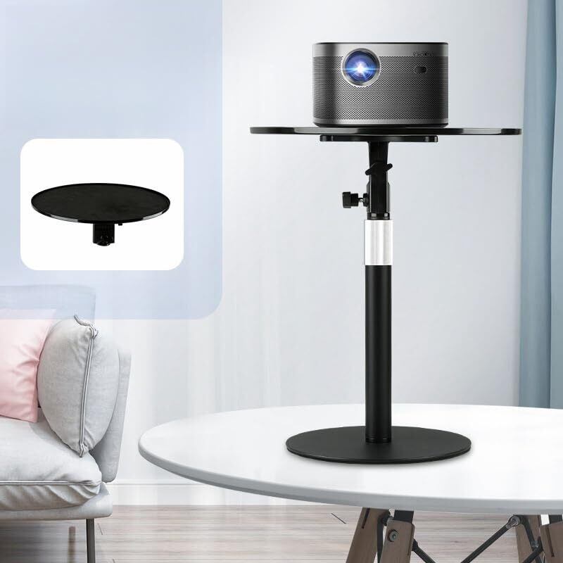 【幅広い互換性】この頑丈なプロジェクタースタンドには直径30cmの金属トレイが付属しており、プロジェクター、軽量で小型のラップトップ、タブレット、携帯電話、Kindleなど、机上に設置できるほとんどのデバイスと互換性があります。