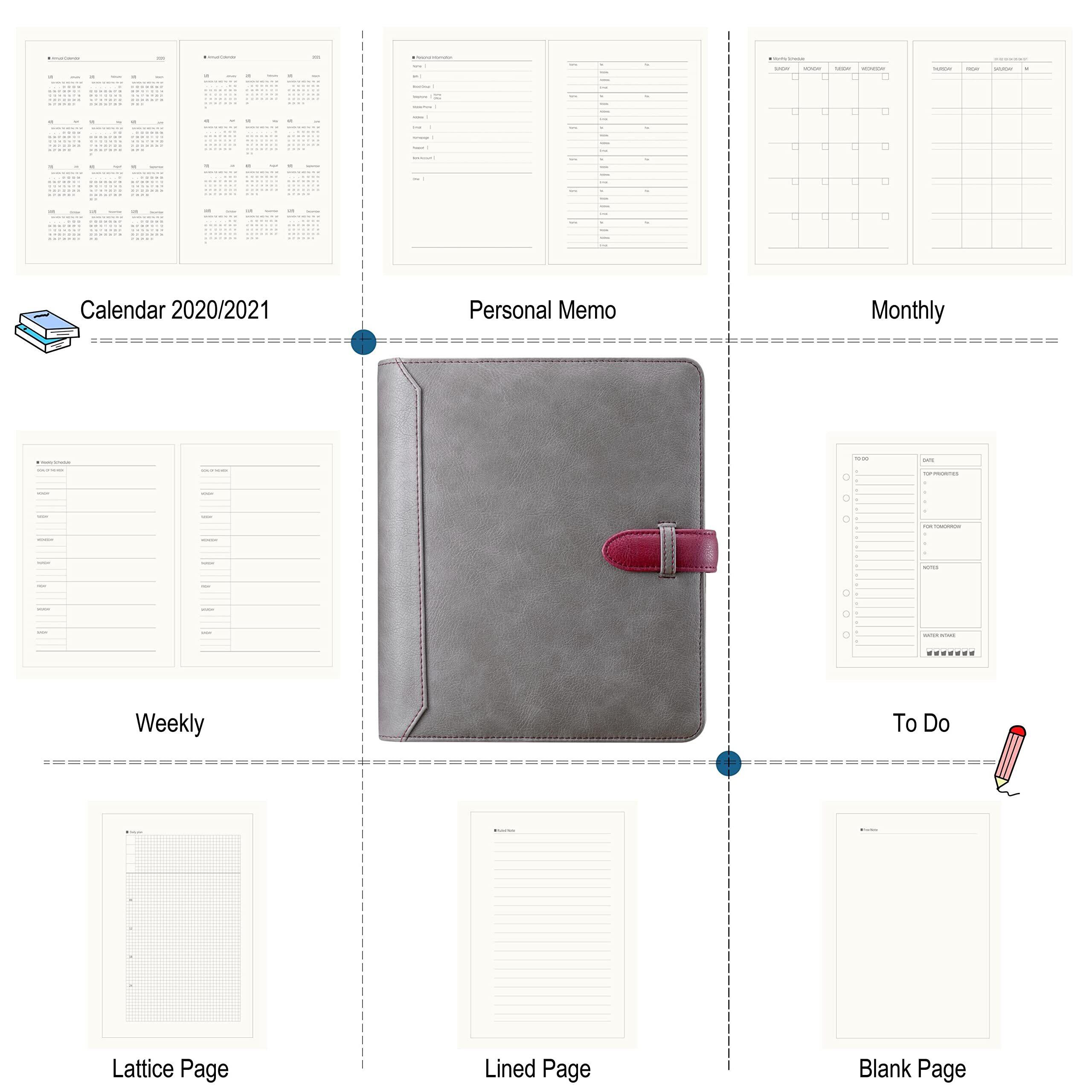 Yiwusoer日記 旅行リフィル式ノート システム手帳 A5/A6 ルーズリーフカスタマイズ 月間週間ディリースケジュール 6リングステンレスバインダー プランナー オーガナイザー (グレー, A5)