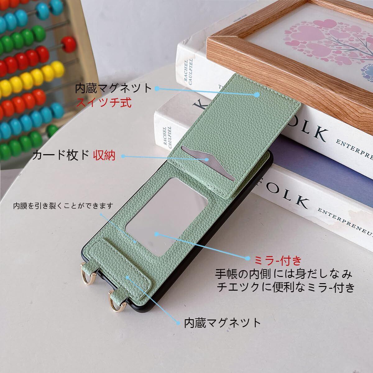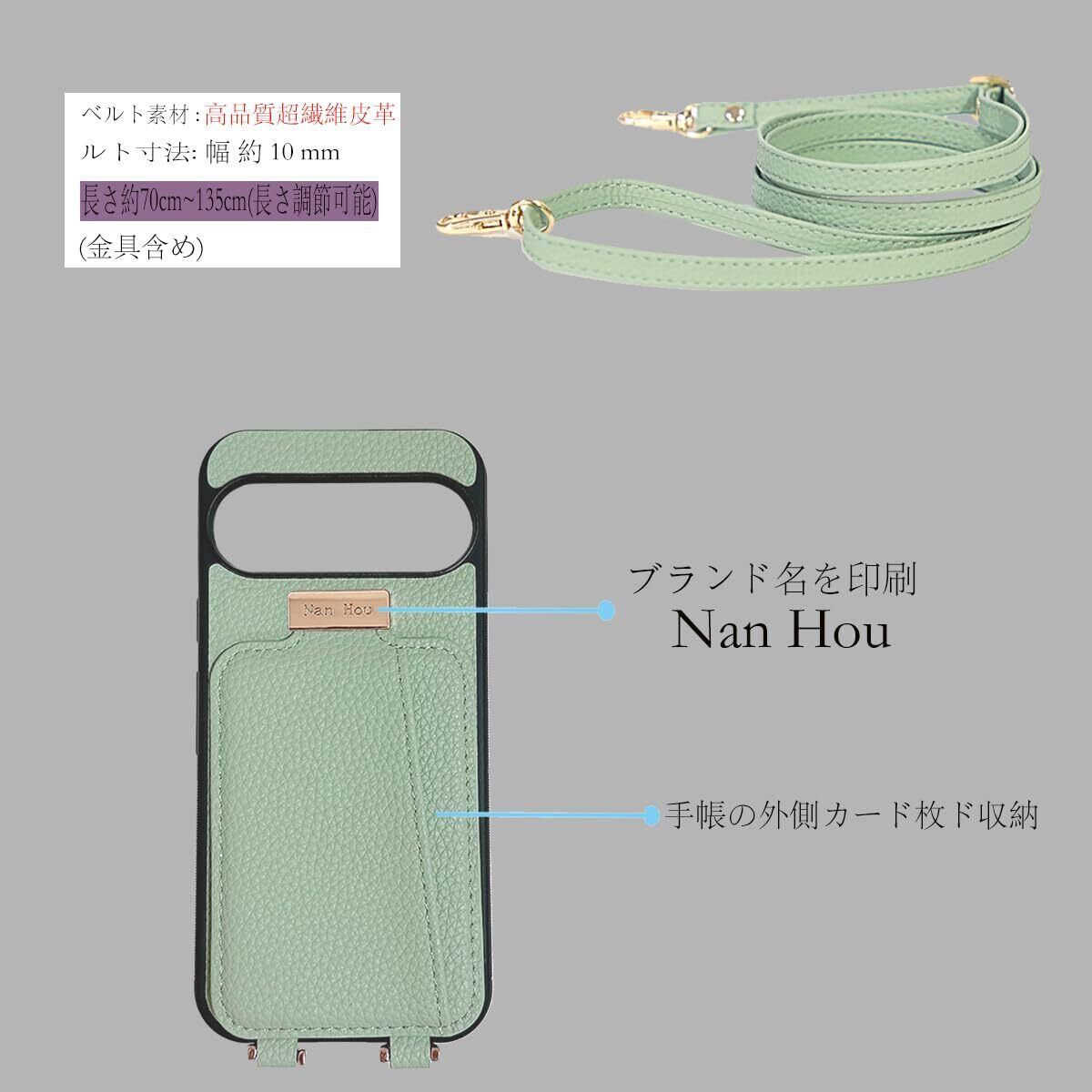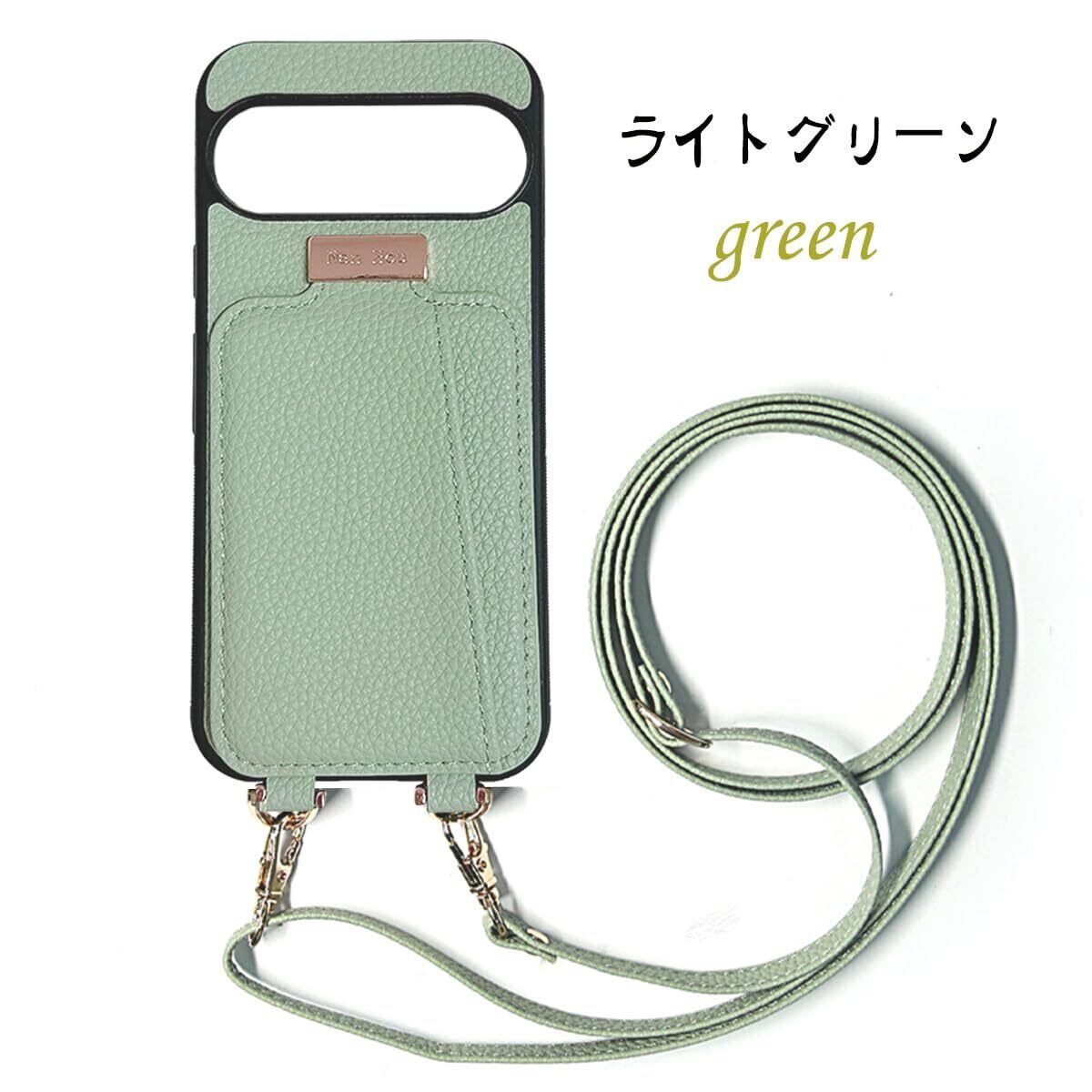 Google Pixel 9/9 pro ケース 手帳型 高質PU ファッション手帳型 斜めショルダーストラップ付き(長さ調整可能)耐衝撃 保護 Google 9/9pro カバー 内蔵 自吸式開閉 マグネット 背面鏡付き 人気 携帯カバー 女性 上品 カードポケット スタンド機能 リストバンド グーグルピクセル 9/9 pro ケース - ライトグリーン