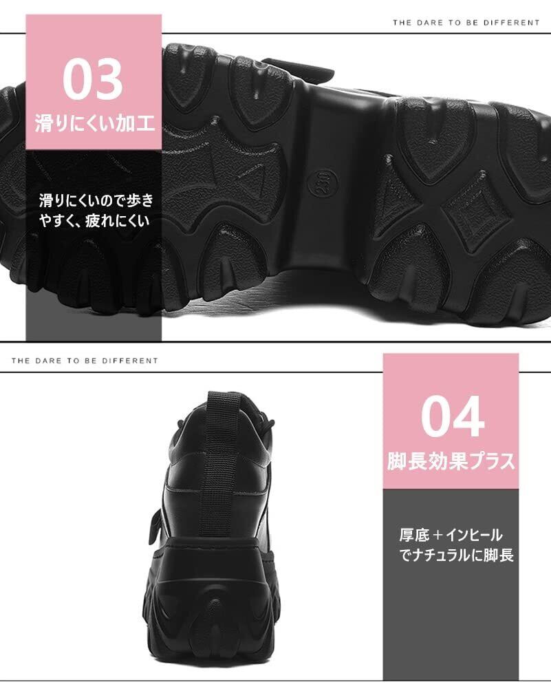 【9CMのソールで脚長効果抜群】パッと目を惹く存在感抜群のトレンド厚底スニーカー。厚みのあるソールで贅奢な足元に。スマートなデザインでスッキリとオシャレに魅せてくれます。