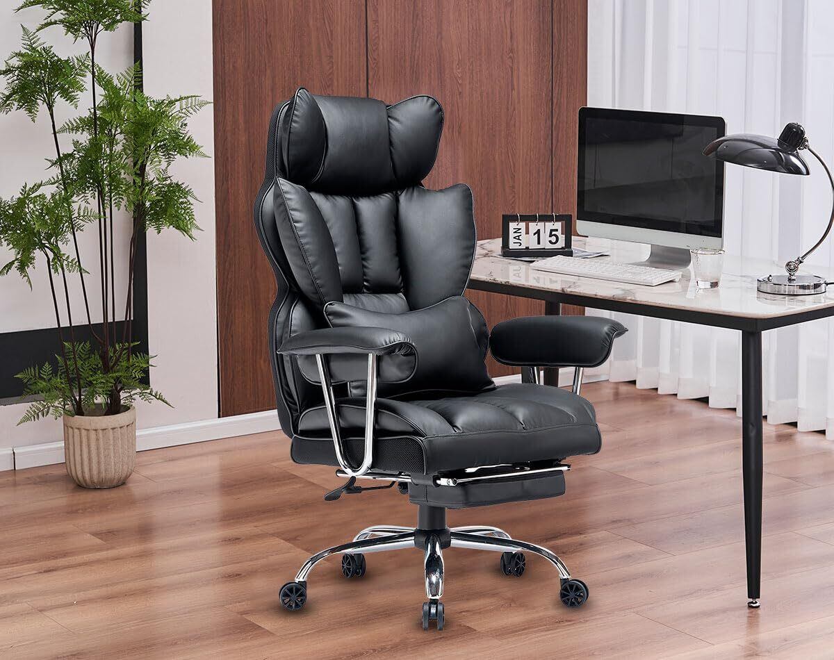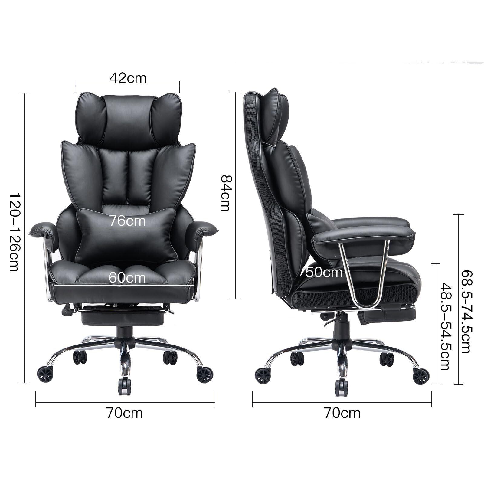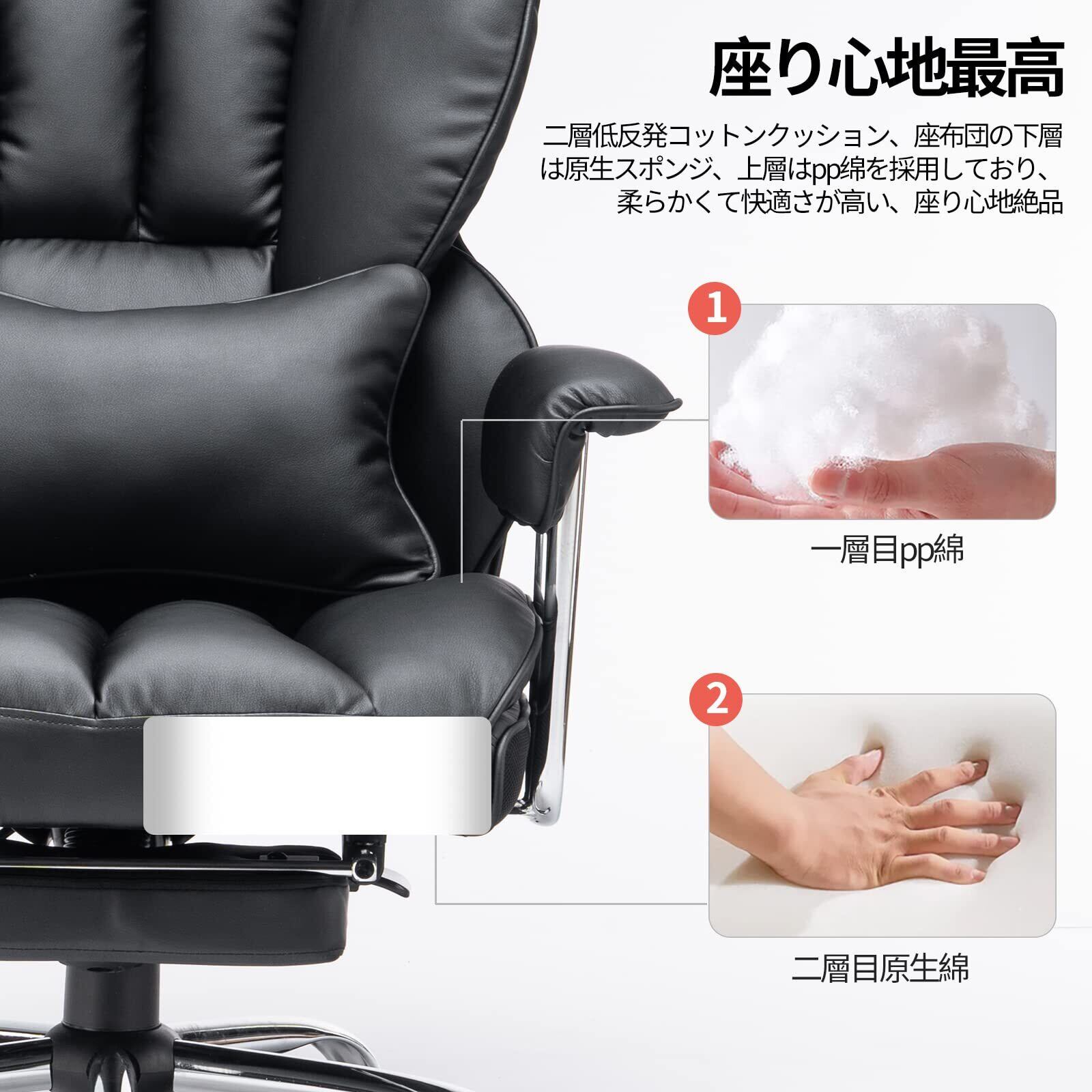 SKYE ゲーミングチェア 座り心地最高 デスクチェア オフィスチェア 肉厚座面 椅子 テレワーク ゲーム用チェア 伸縮可能のオットマン 社長椅子 PUレザー (ブラック)