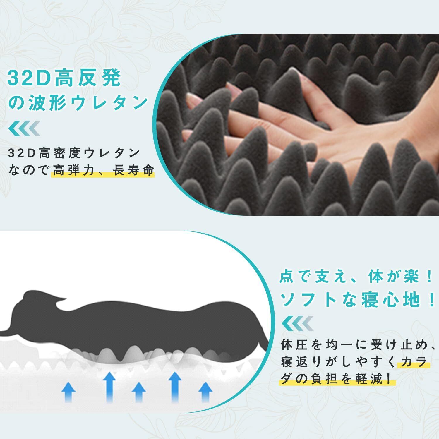 【高反発で寝返りし放題】ベッドクッションはプロファイル加工された高反発ウレタン素材を採用し、 凹凸の点で体を支えて、体圧分散が均等に行われ、 体への負担が軽滅され、快適な寝心地を実現しました。 高反発犬ベッドなので、床ずれ予防にもつながります。 寝返りし放題で、高齢ペットや子犬にオススメです。