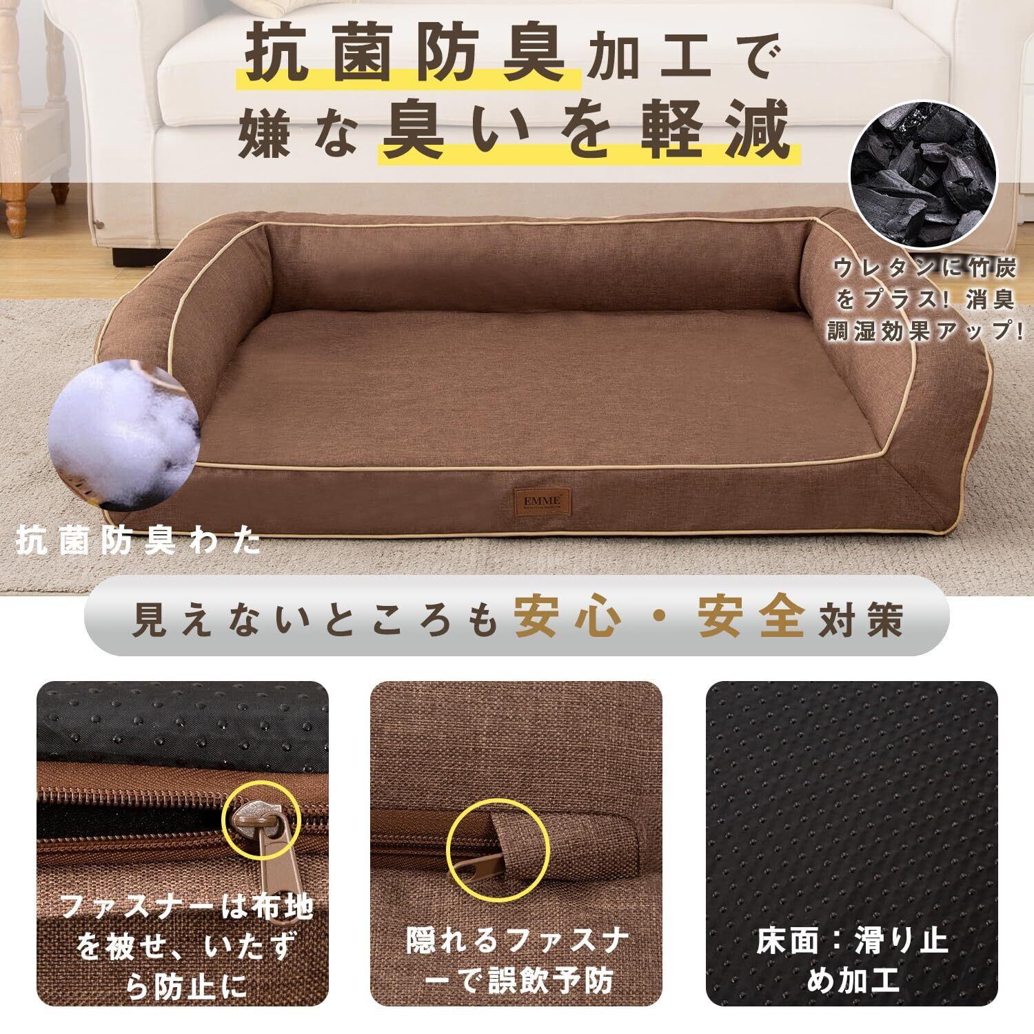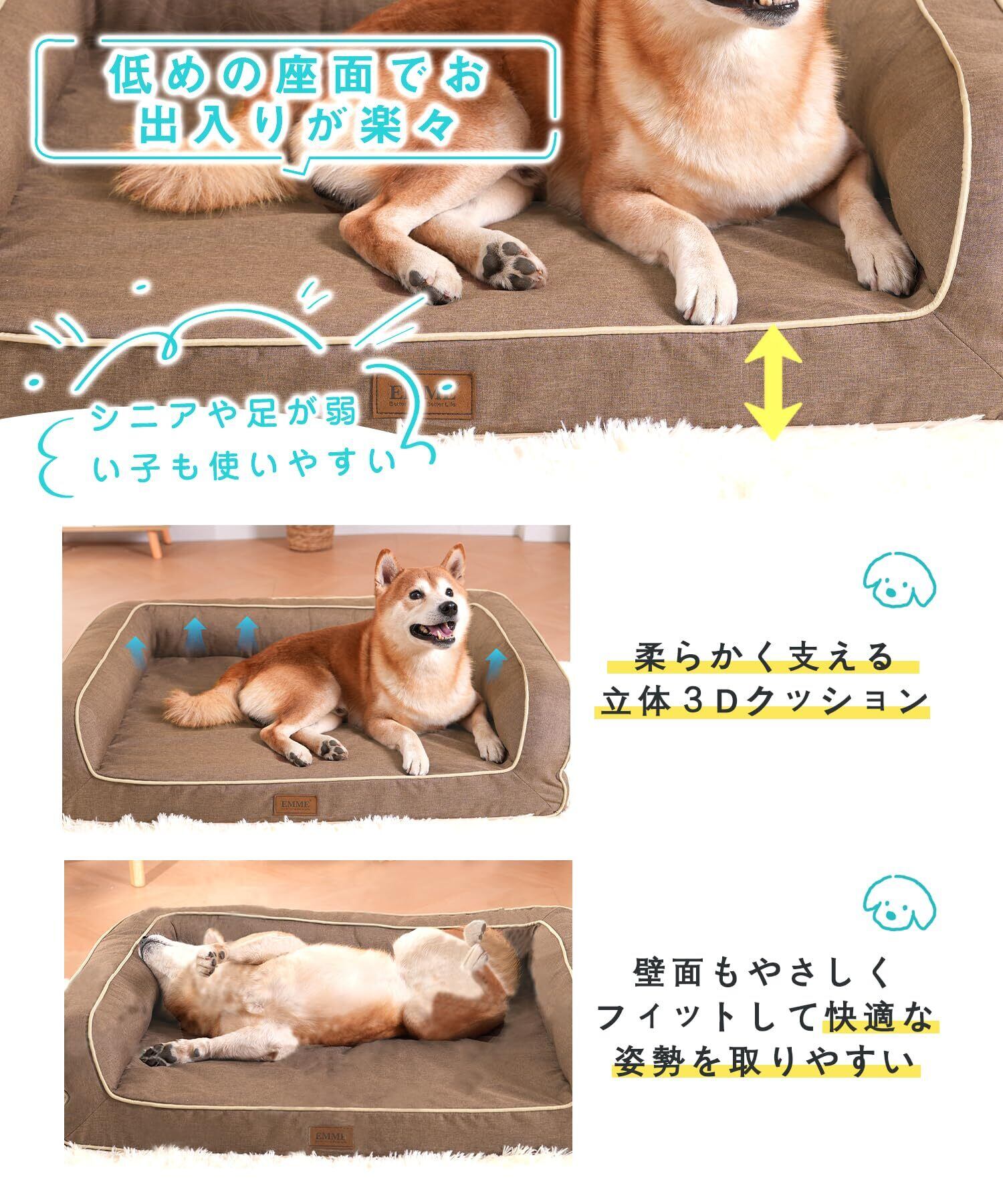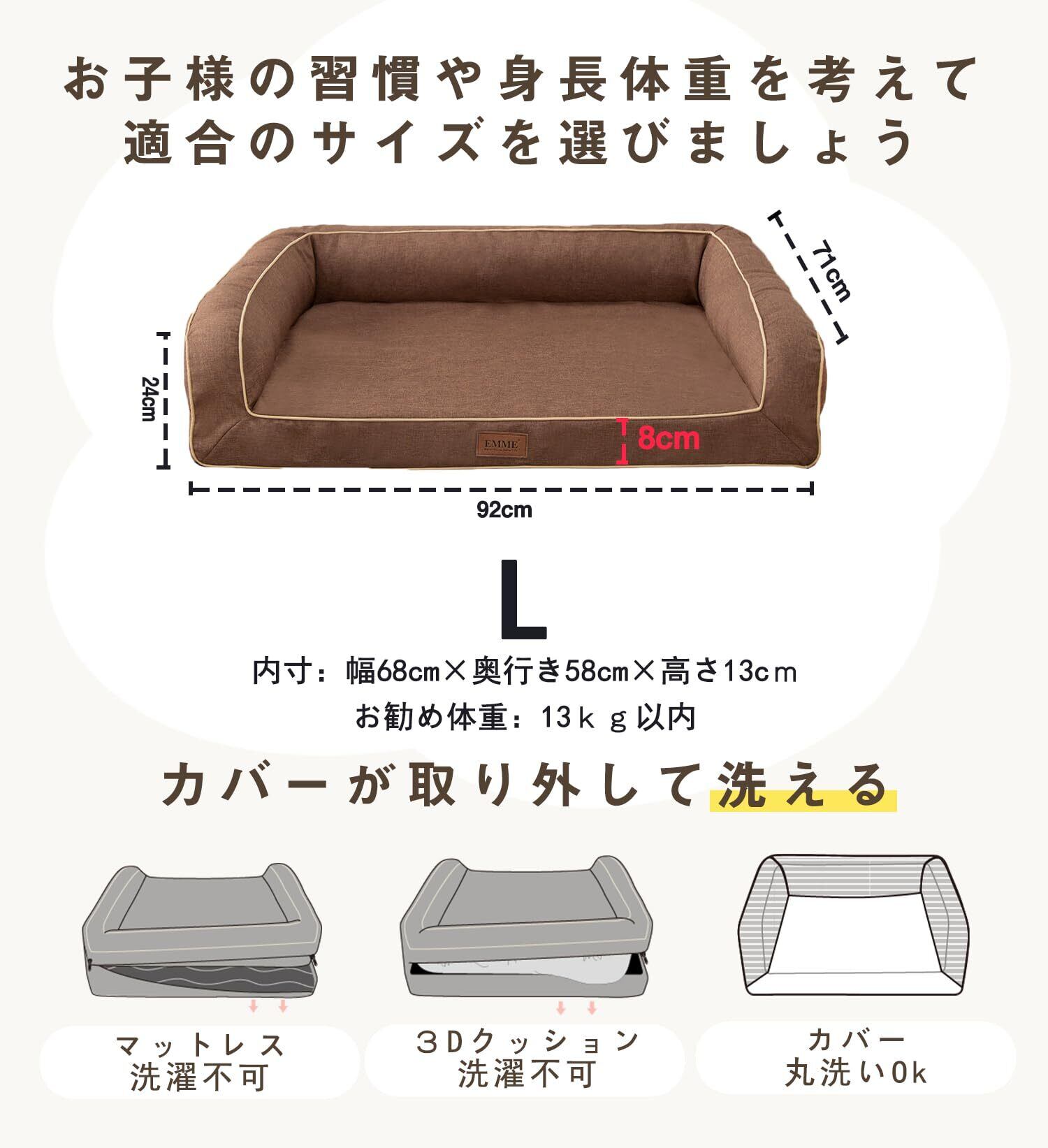 EMME 犬 ベッド 清掃しやすい 防水 ソファー 犬用ベッド 洗える さらさら 通気性 蒸れにくい ペットクッション 枕付き クッション性が 高反発 高齢犬 子犬 猫 多頭飼い 取り外せるカバー 滑り止め オールシーズン 中型犬 大型犬 洗える ペット用92x71x24cm ブラウン Lサイズ