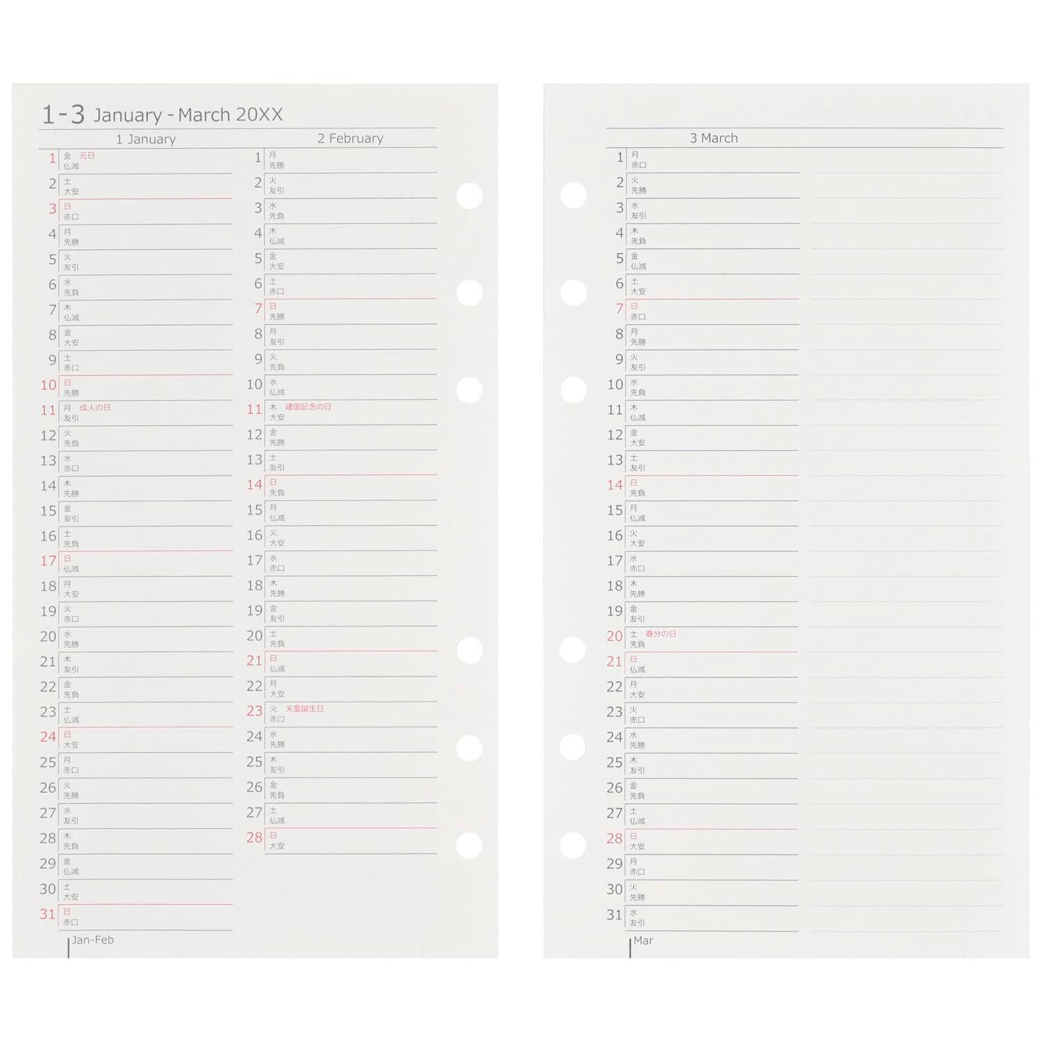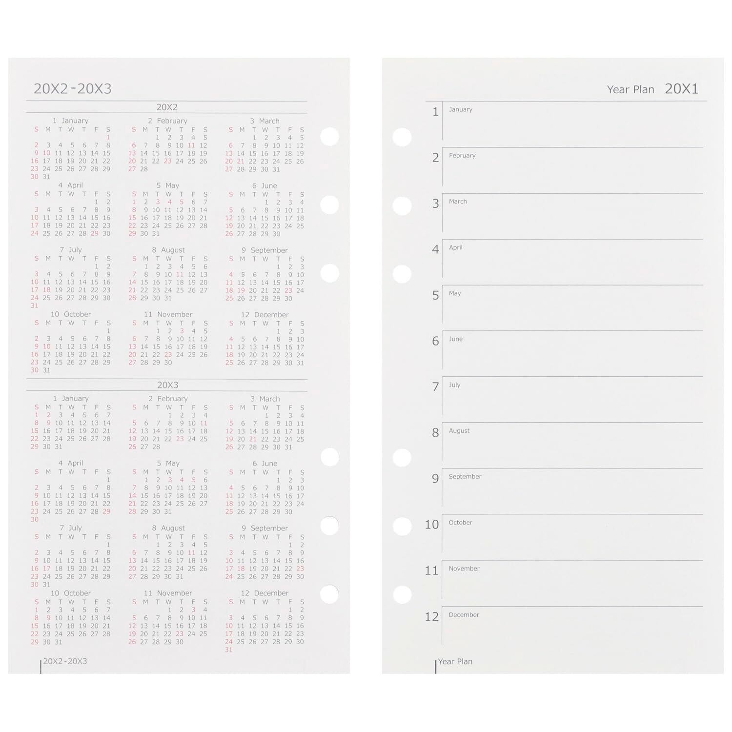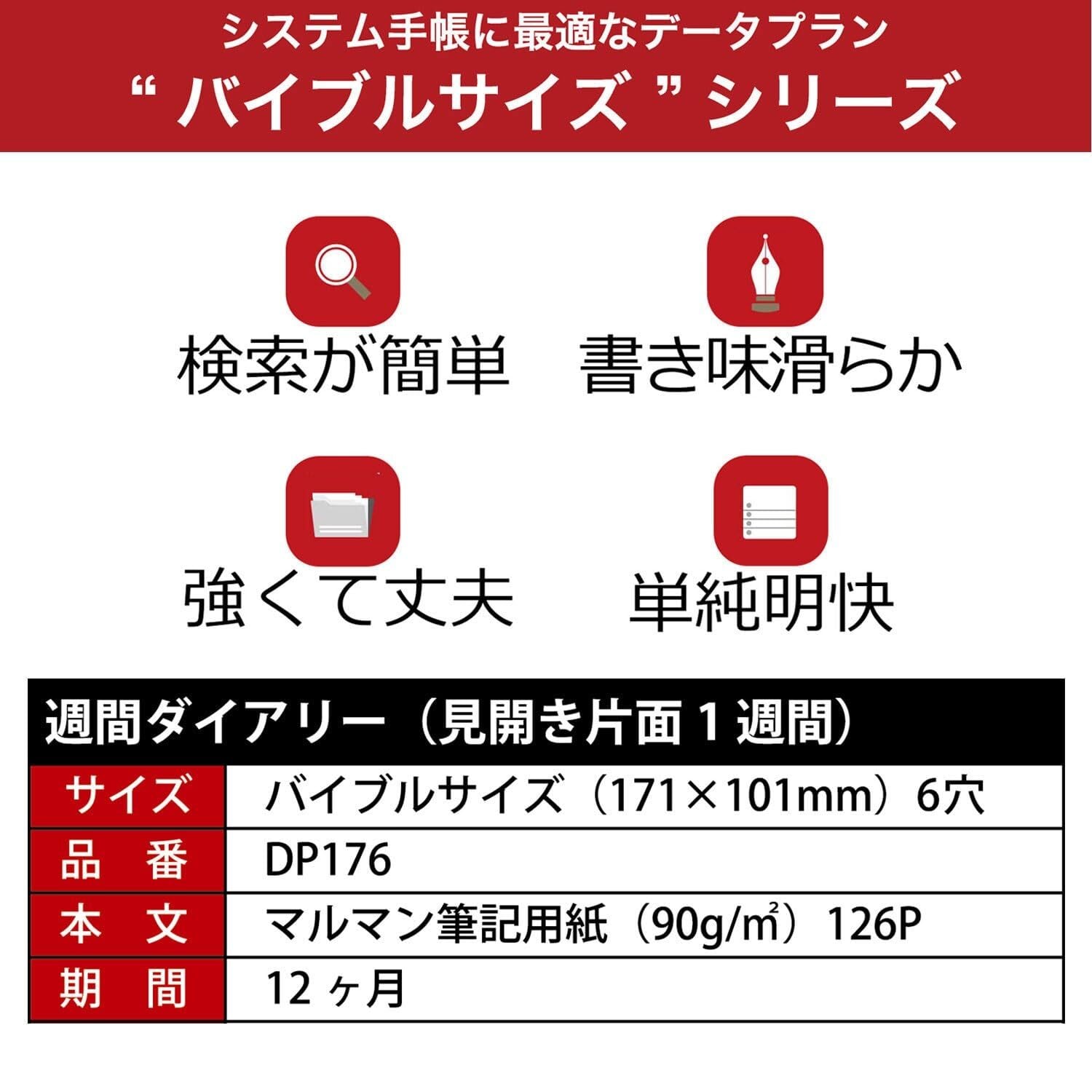 【本文】126P(12ヶ月分) 【用紙】マルマン筆記用紙 90g/m2 【穴数】6穴