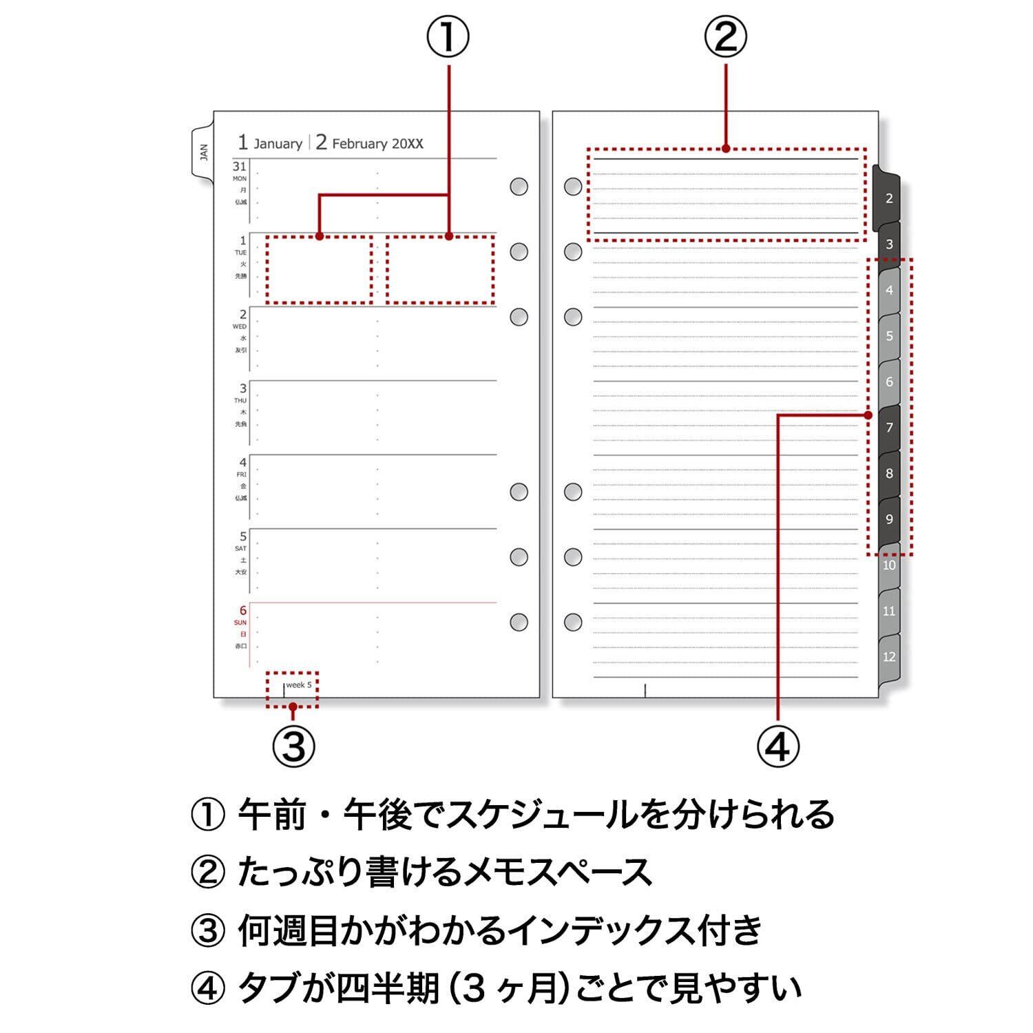 何週目かが分かるインデックスがついてます。