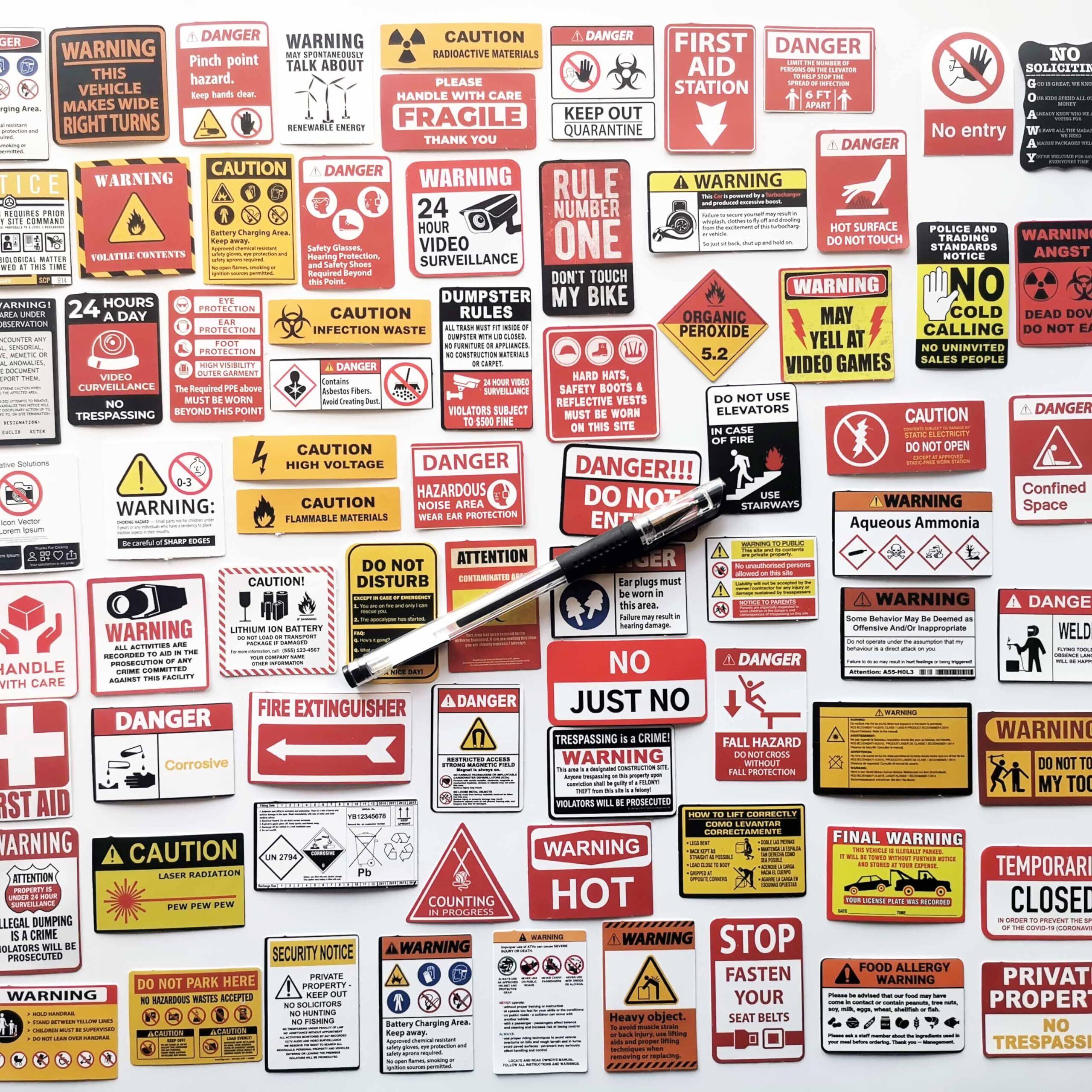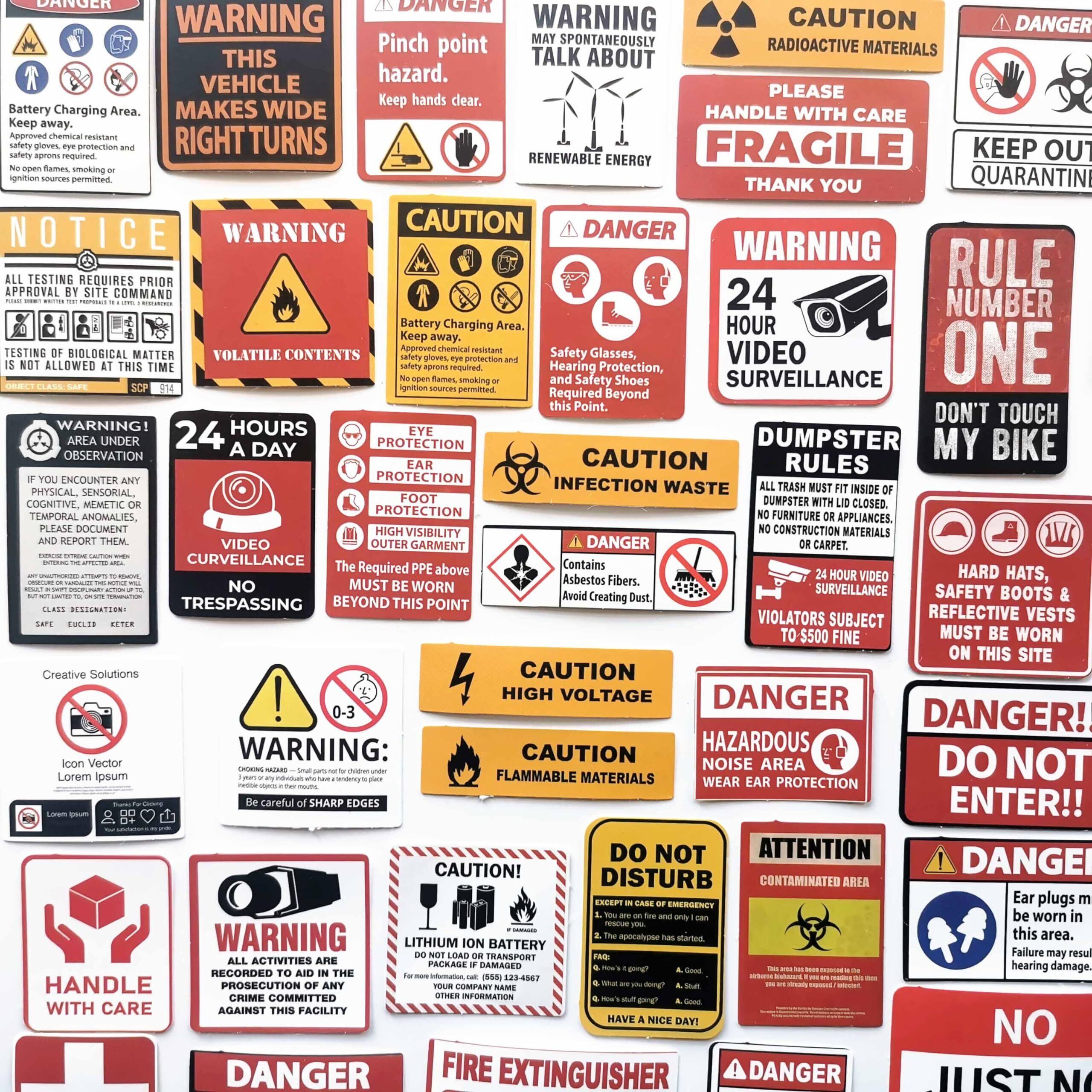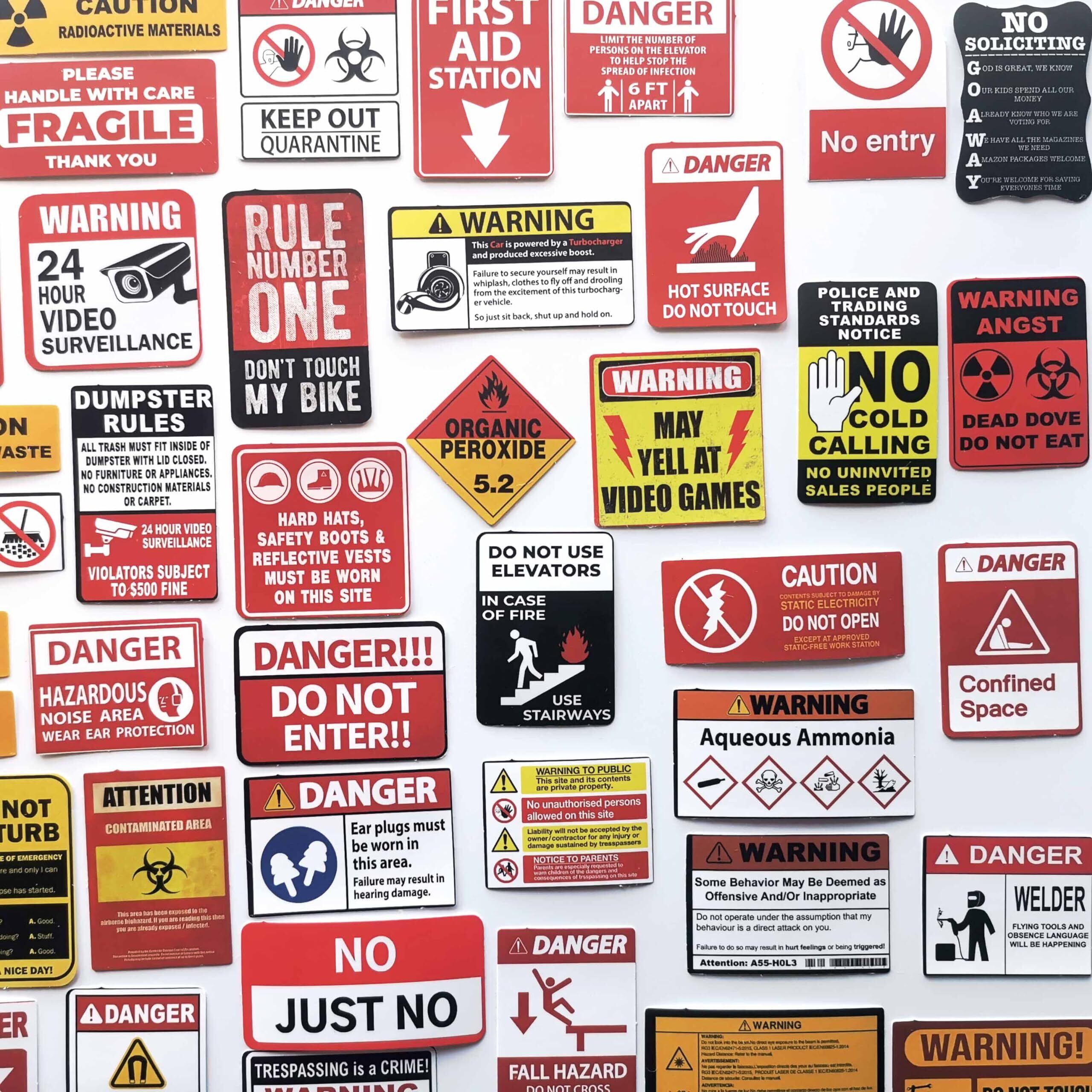 75枚 警告ラベル バラエティ安全標識ステッカー アメリカン面白ステッカー 英語入り オモシロ注意喚起シール
