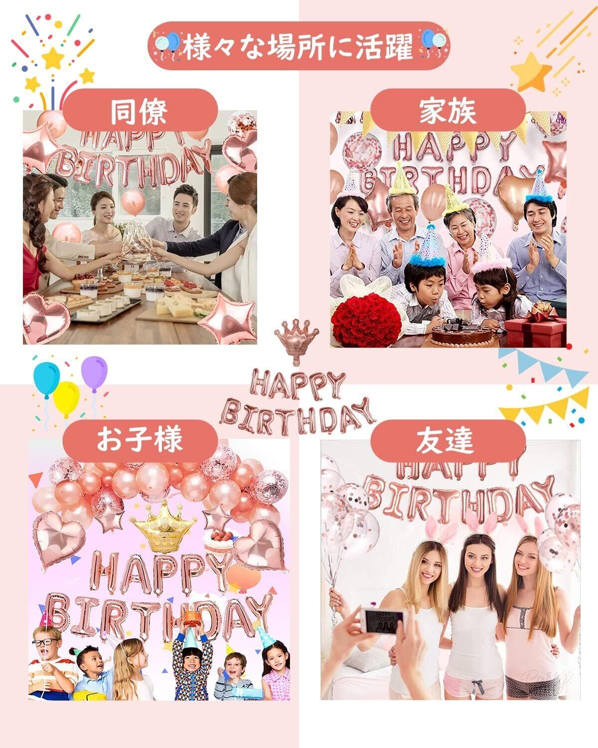 【多彩な装飾で応用範囲広い】 豪華なバルーン誕生日セットは、誕生日飾り付け女の子や大人にも適しており、目を引く鮮やかな色で喜びの雰囲気を高めます。誕生日、忘年会、クリスマスイブ、結婚式など、さまざまな記念日にピッタリです。特別な日には、誕生日ガーランドと共に素晴らしい記念写真を撮影しましょう。