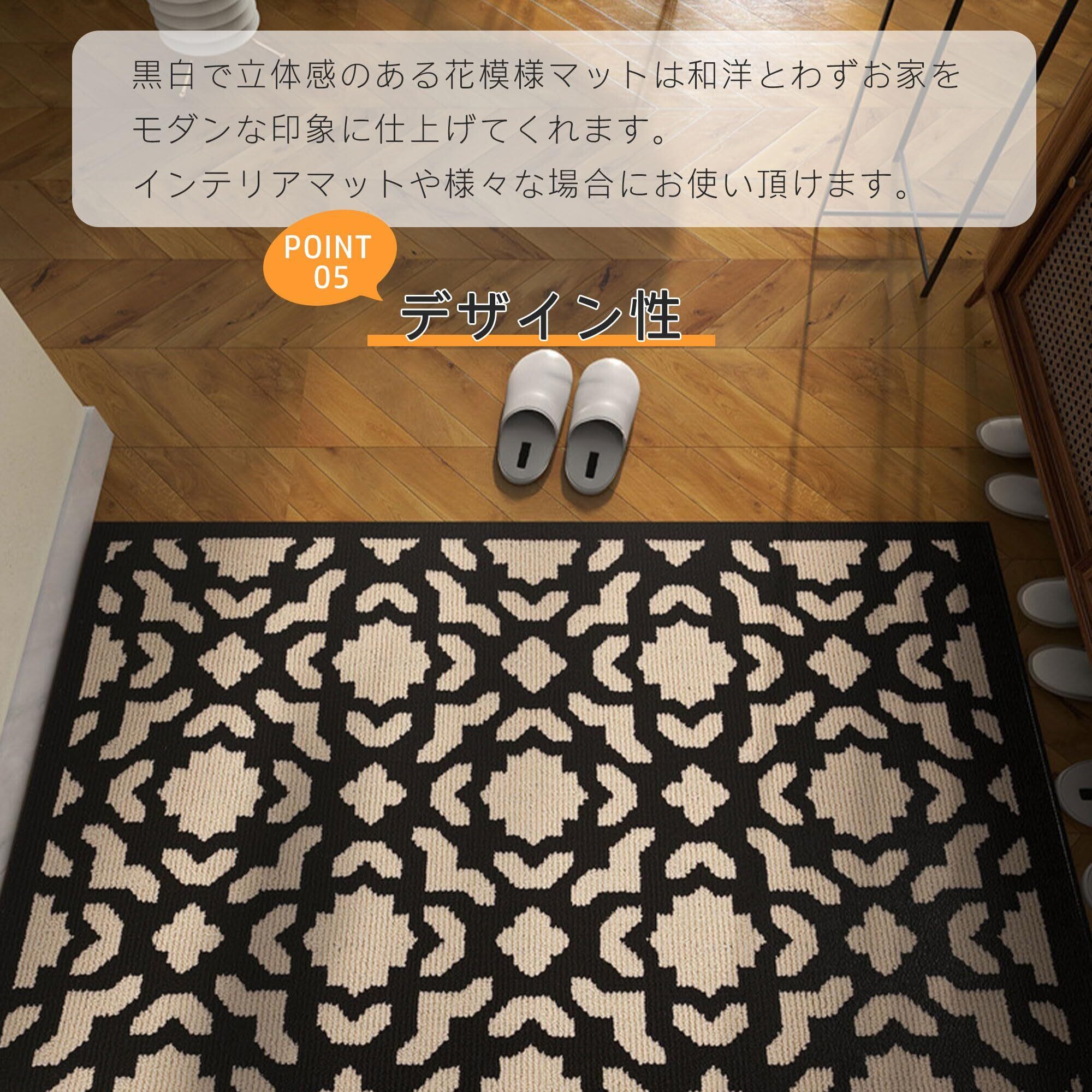 【オシャレなデザイン 和モダン・和風・洋風】落ち着いた黒白カラーかつ立体感のある花模様マットは和洋とわずお家をモダンな印象に仕上げてくれます。お家の玄関、台所、ドア、階段、エントランス、キッチン、洗面台、寝室、トイレなど様々な場合にお使い頂けます。新居での新しい生活をスタートさせた方に新築・引越しお祝いの気持ちが伝わるギフトとしても最適です