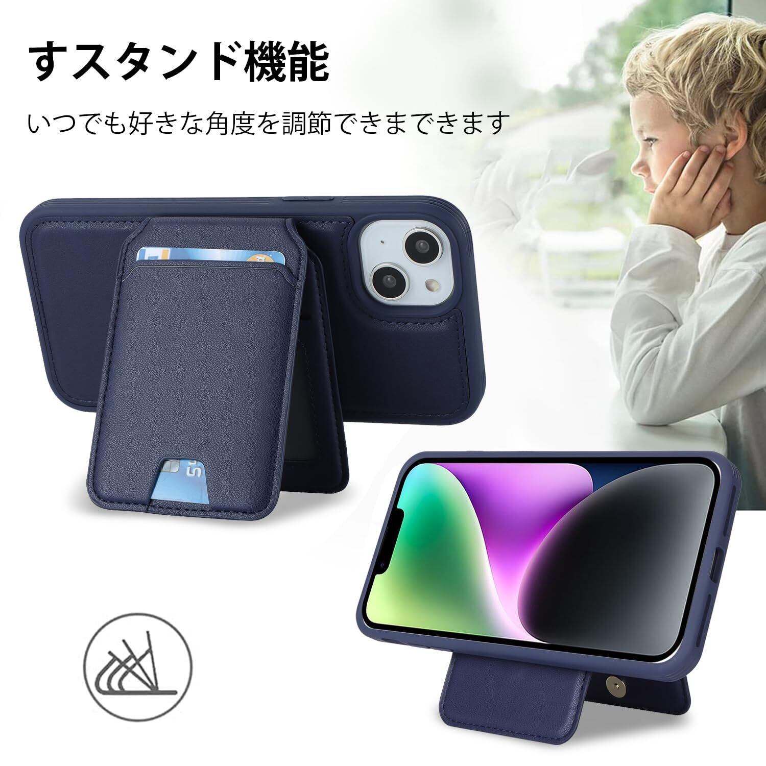 【MagSafe充電対応】:ケース背面にはMagSafeに対応する半円の専用デザインで、本体を入れたまま、横置きでも充電を容易く実現しました。使用中であっても、携帯電話の充電を邪魔しません。磁気吸引は強くならず、適切な範囲に制御されます。磁気が強すぎるためにカード磁気が失効することを避けます。MagSafe充電の取り扱い方について、本商品ページにて展示用のビデオをご覧くださいようお願いします。