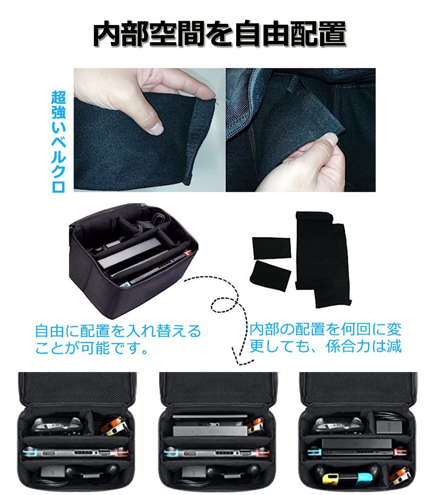 【抜群な収納力】よく整えられ、十分なスペースがあります。Switch本体だけでなく、ケーブル、イヤホン、SDカードなども一緒に分類して収納可能です。持ち運びやすい、軽量、衝撃吸収性にも優れており、機能面も満足していただけます。