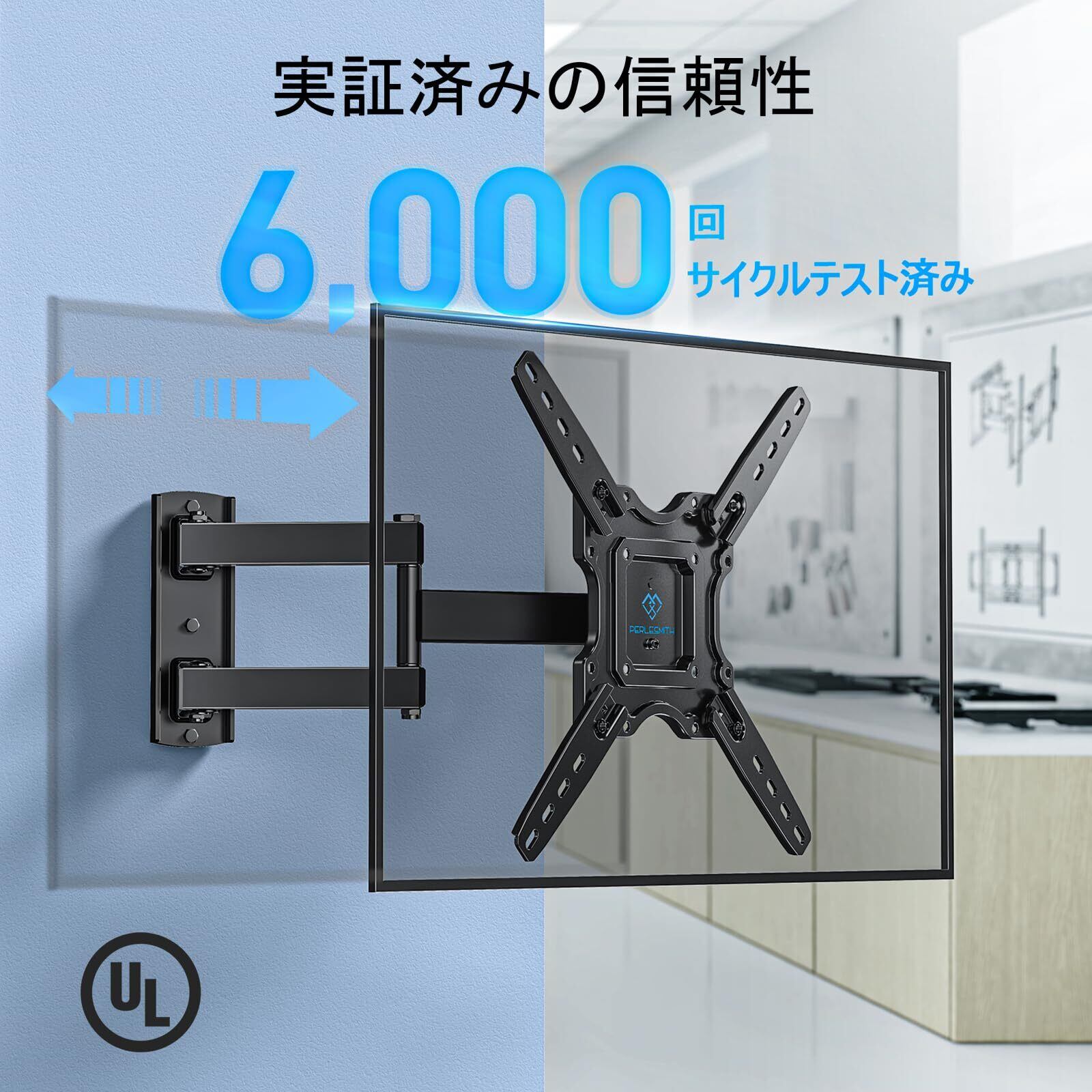 【テレビを壁に固定しましょう!】誰もが、わが家を安全な場所にしたいと願っています。テレビの転倒を防ぐもっともよい方法は、テレビを壁に固定することです。PERLESMITH壁掛けテレビ金具はアメリカUL安全テストを基準に4倍最大耐荷重試験済み。冷間圧延鉄素材で作られて、丈夫で耐震性もあります。テレビが倒れる心配がなく、ご安心に利用いただけます。※当社のすべて商品はご購入日から三年間の品質保証サービスをご提供いたします。