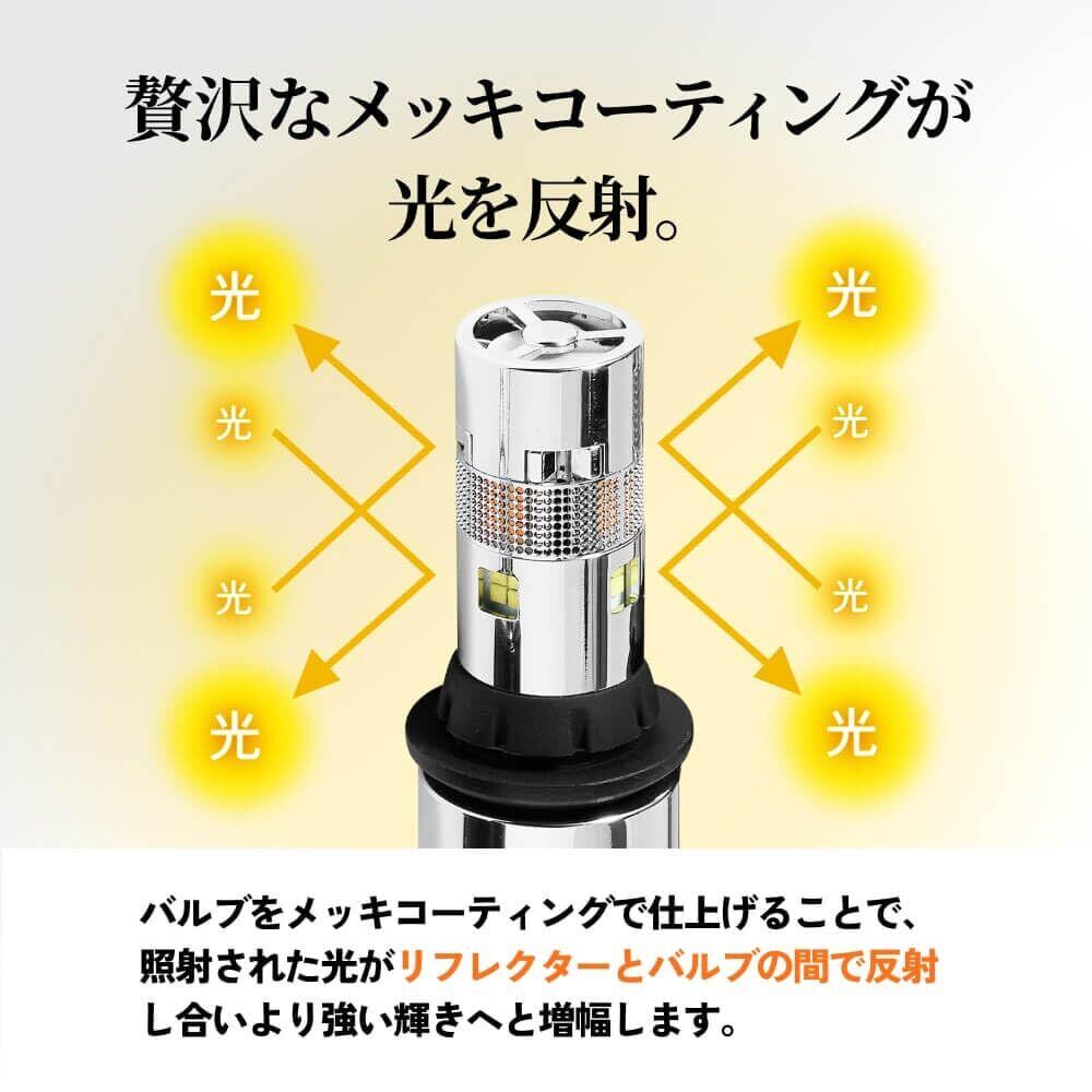 【贅沢なメッキコーティングが光を反射】バルブをメッキコーティングで仕上げることで、照射された光がリフレクターとバルブの間で反射し合い強い輝きへと増幅します。ステルス仕様で消灯時の外見がよりスマートに。【革新的な内部構造】熱感知制御センサー内蔵で高耐熱・高耐久。ファンの音が気にならない静音設計。