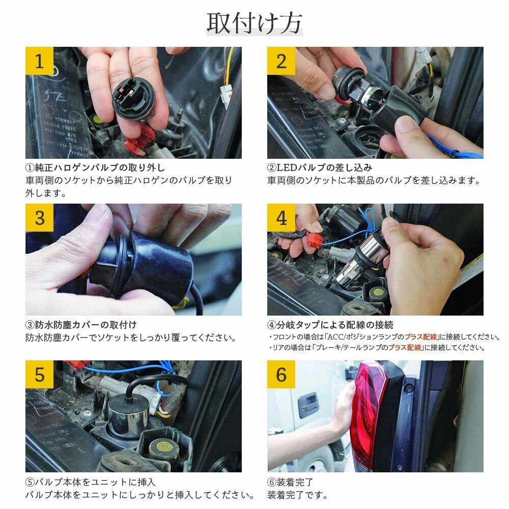 【簡単ポジション増設】アンバー色:通常のウィンカーとして点灯。ホワイト色:ポジションランプと連動して点灯。昼間でもしっかり視認できる明るさ。【まぶしすぎない明るさ】ハイフラ現象を抑えた2色切替ウインカー。明るくキレのある発光。「ハイフラ防止抵抗機能」内蔵。さらに当社独自の設計をプラスし、安定した点滅を実現しています。