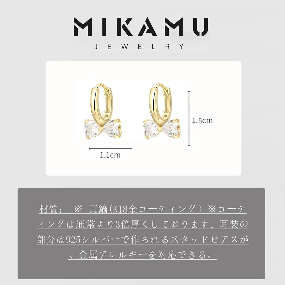 MIKAMU リボン フープピアス レディース 人気 最高級ジルコニア 18K 18金 人気 レディース リボン フープピアス 安心の 金属アレルギー対応 ギフト 専用ボックス付き