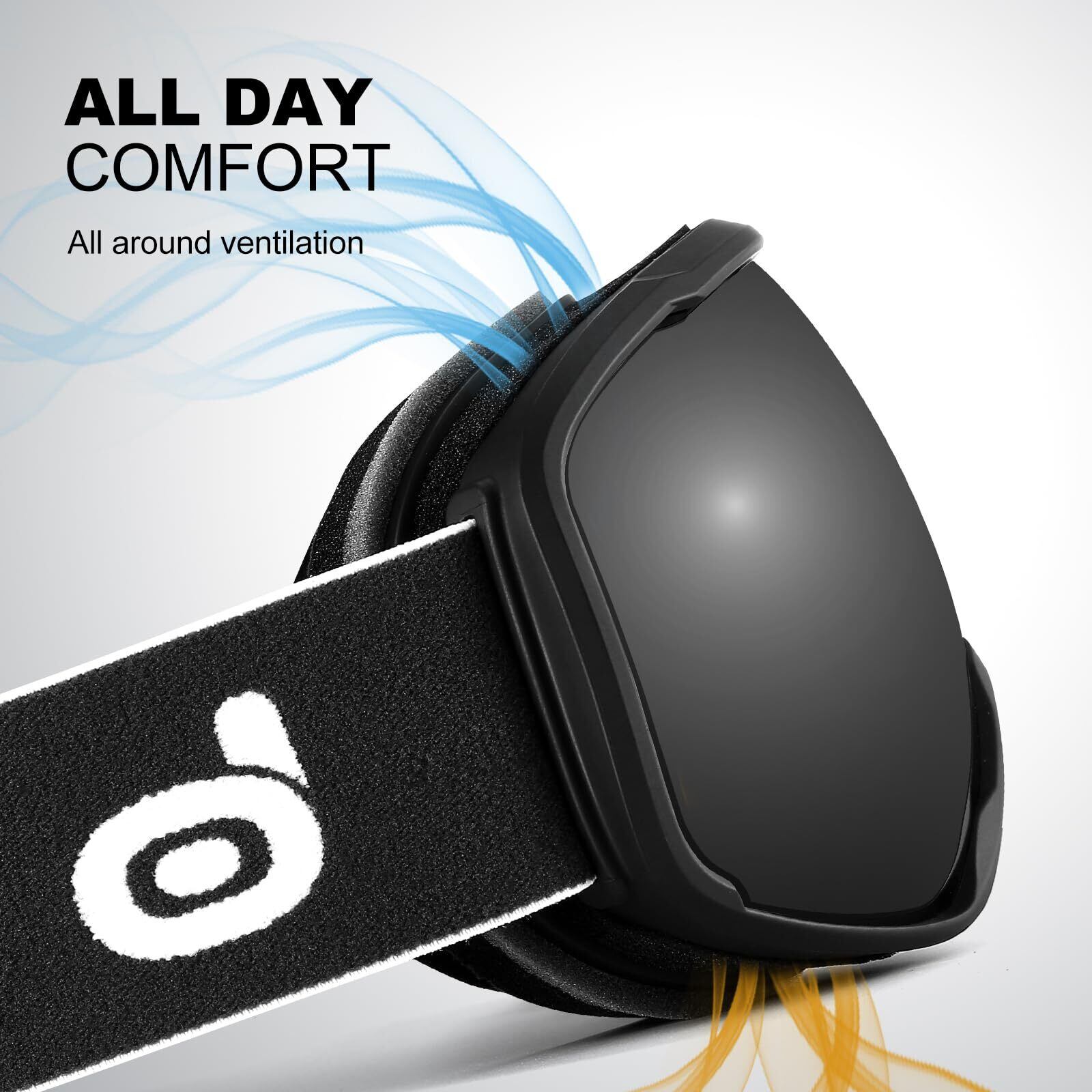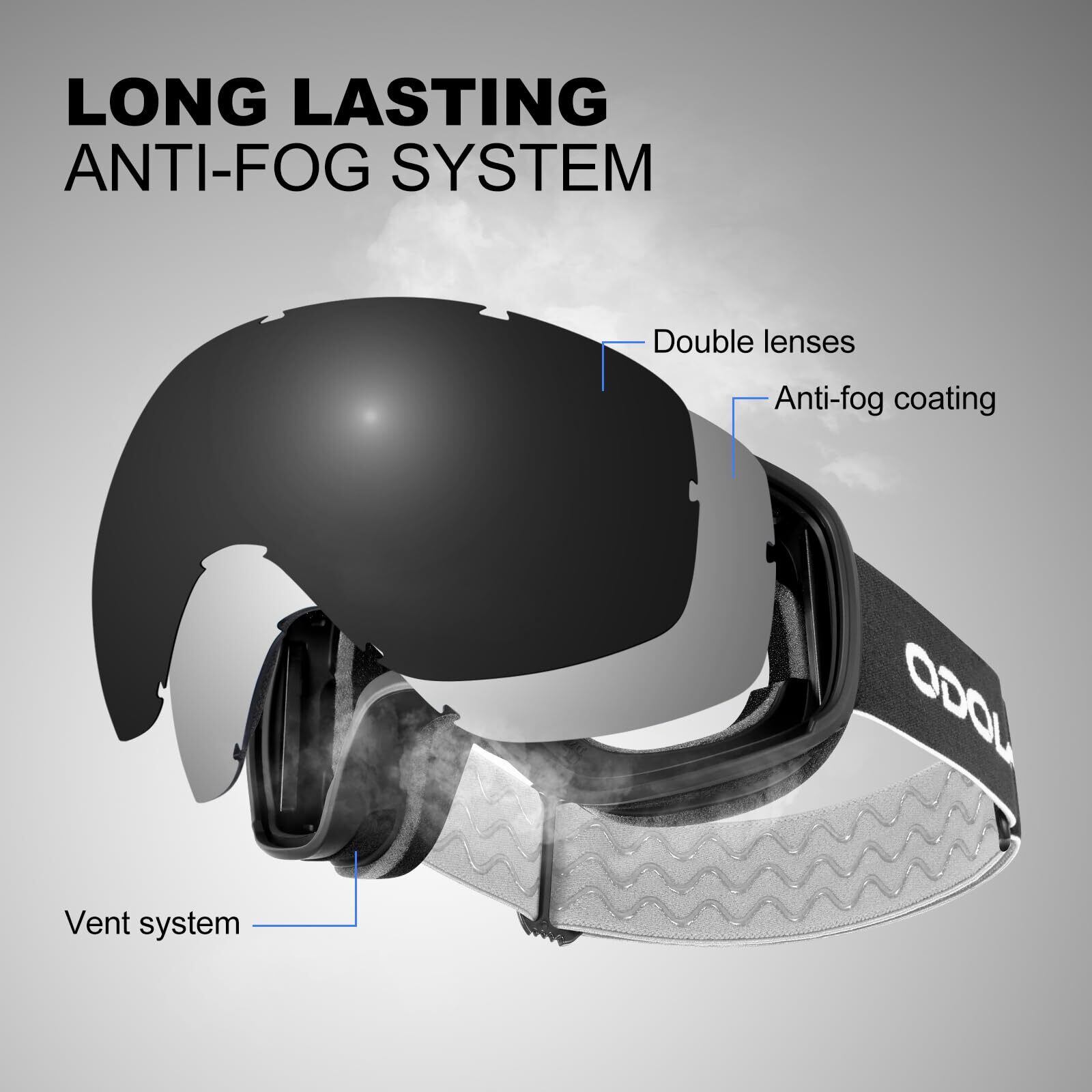 [Odoland] スノーゴーグル 2層球面レンズ 曇り止め OTGメガネ対応 ミラーレンズ UV400 ダブルレンズ スノーボードゴーグル 通気 防風 防塵 防雪 軽量 耐衝撃 男女兼用 大人用
