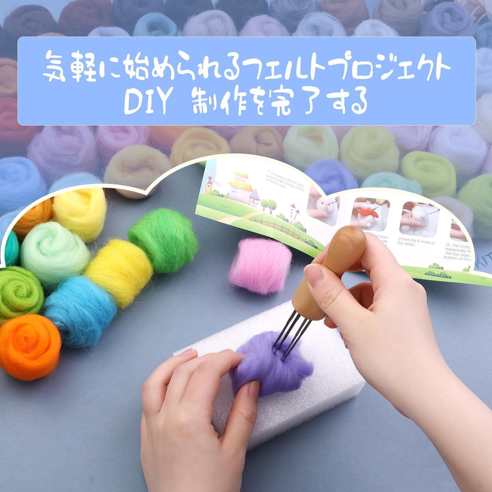 ニードル フェルト キット 72 色 ウール ロービング糸 自然繊維 ウール ニードル フェルト ウール ニードル フェルト スターター キット ウェット フェルト DIY 作品用 3 層透明収納ボックス付き