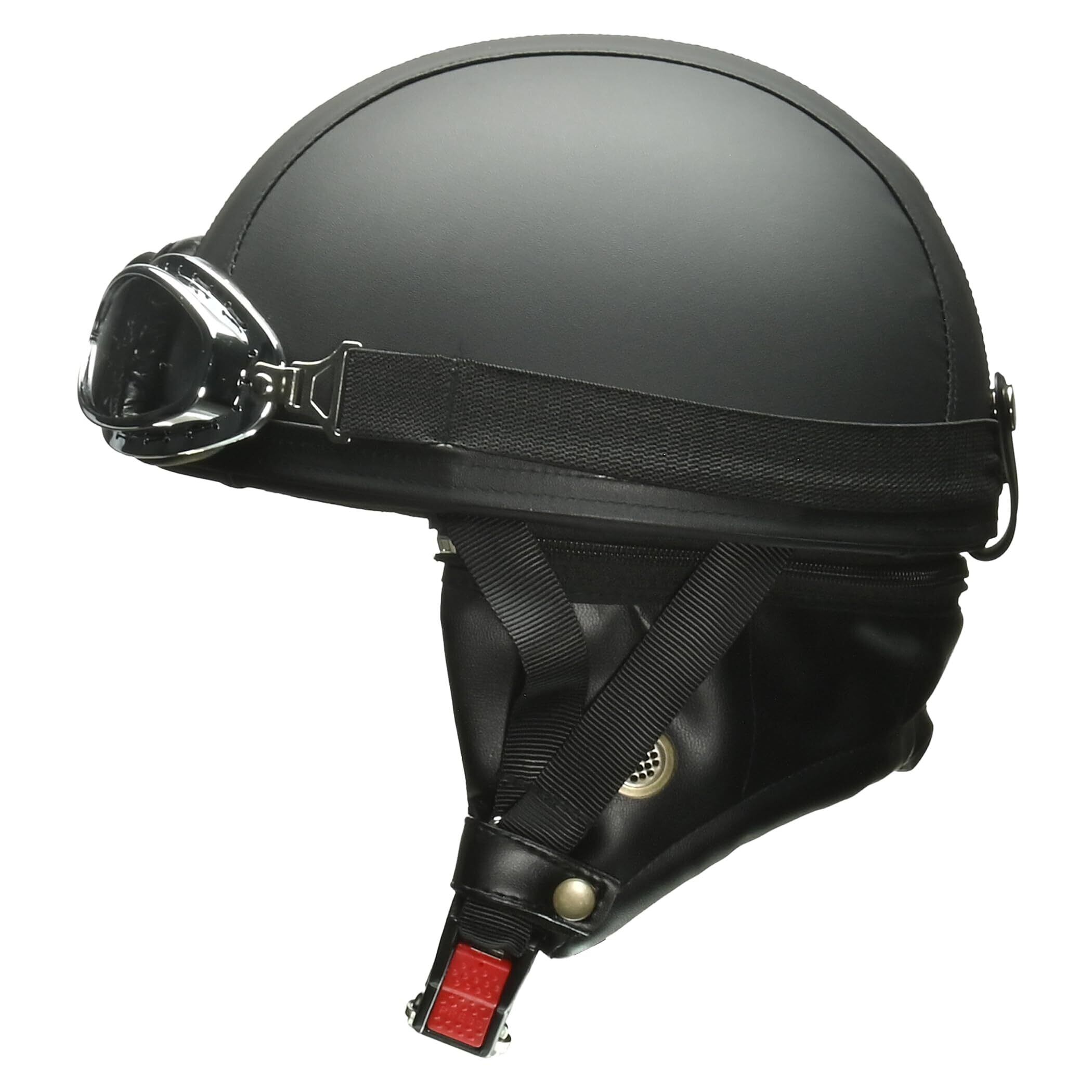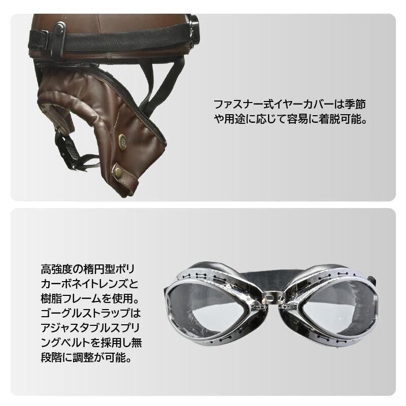 楕円型のビンテージゴーグルがセットになったイヤーカバー付ハーフヘルメット。