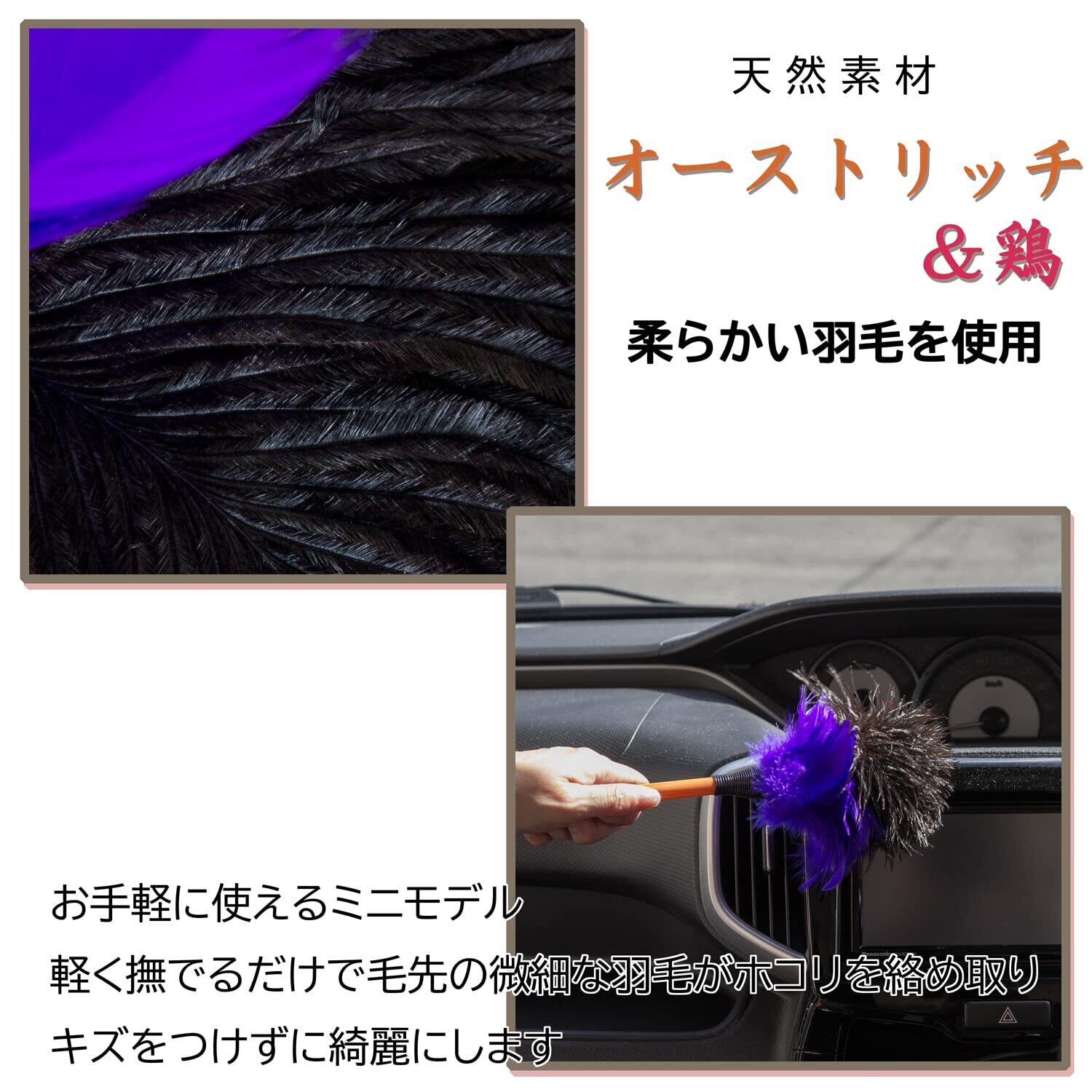 ESCI 【日本製】ダッシュボードやデスク周りのホコリ取りに! カラフルで可愛い手作りミニ毛ばたき パープル M15