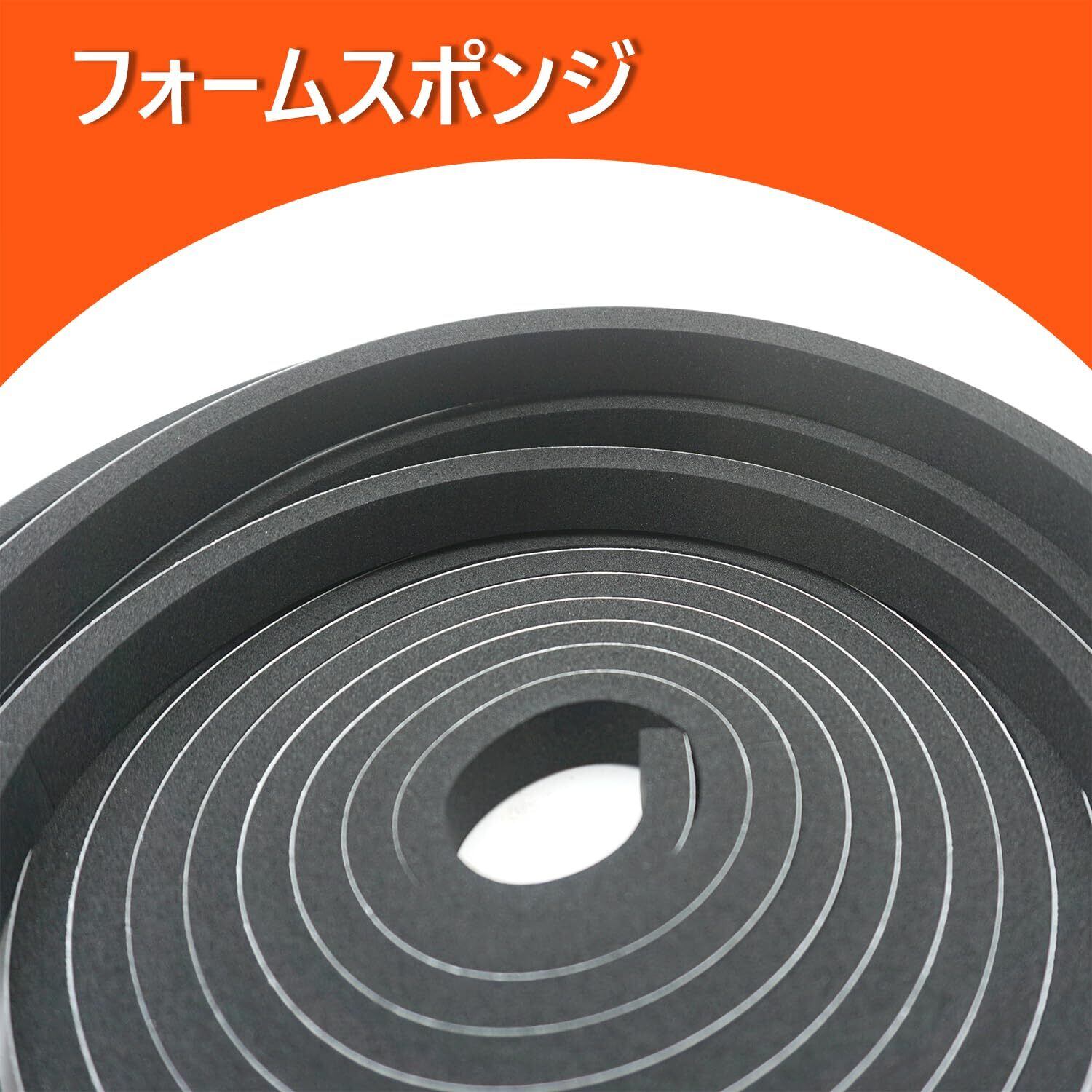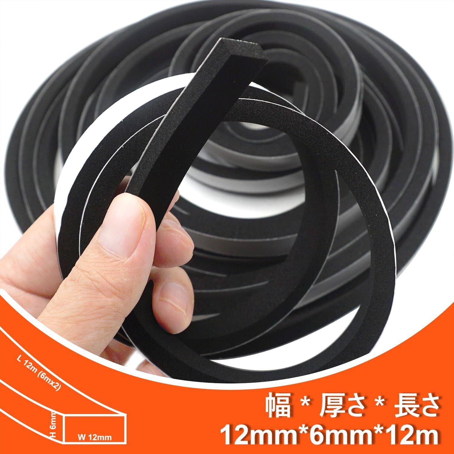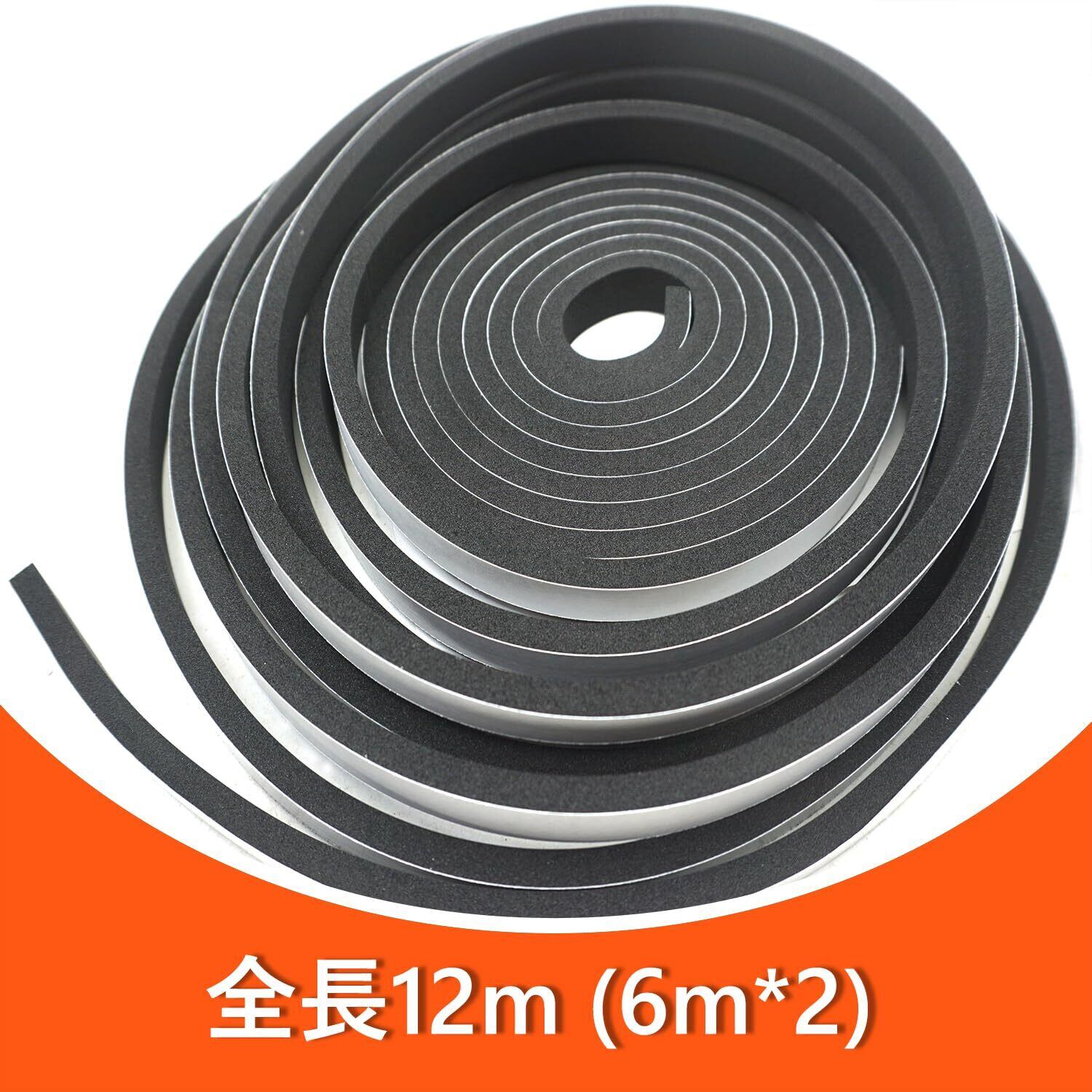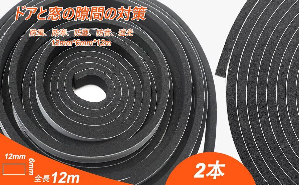 ドアと窓の隙間シールテープ、フォームスポンジ材質、幅12mm、厚さ6mm、全長12m(2巻、各巻6m)。