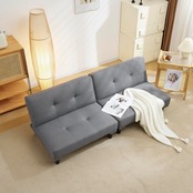 2台1セット、リクライニング可能な分割式ソファベッド。組み合わせ方で、分割して1人掛けソファ、繋げて3人掛けソファ、片側だけ倒してカウチソファ、全ての背もたれを倒してソファベッドなど、お部屋に合わせて多様な使い方ができます。