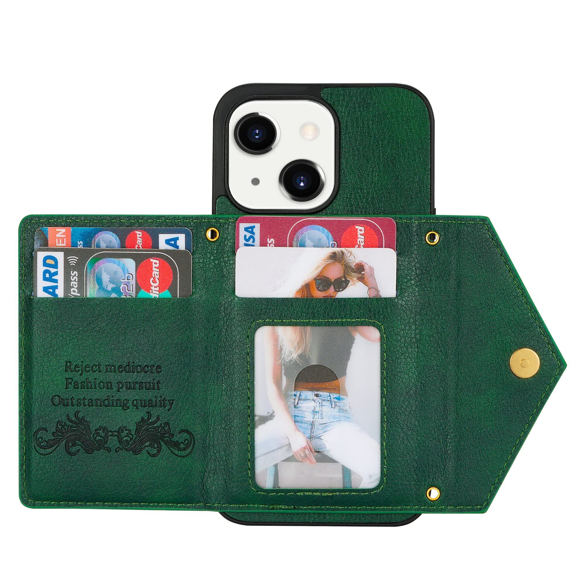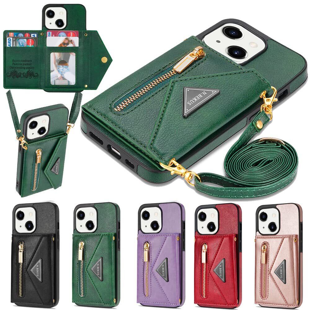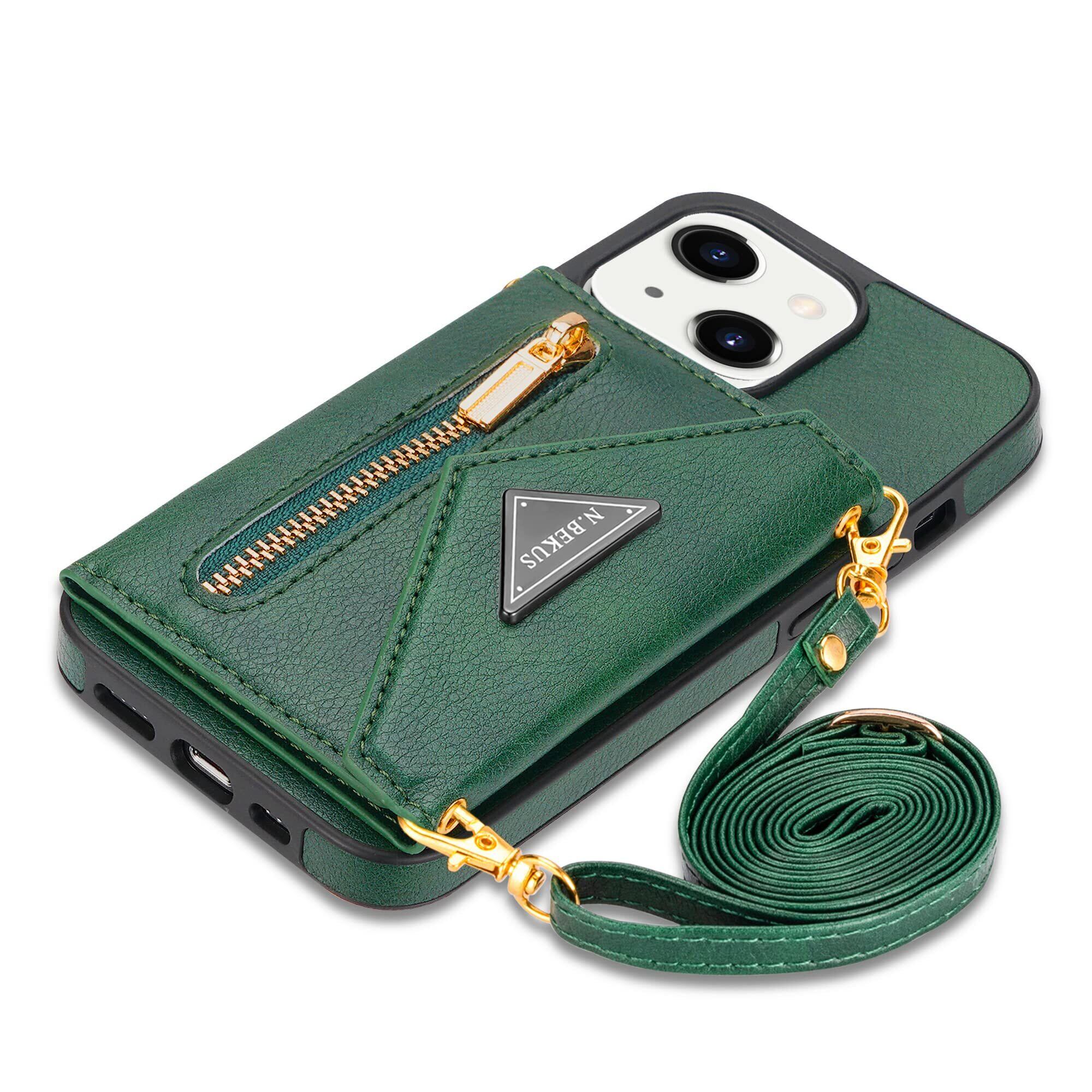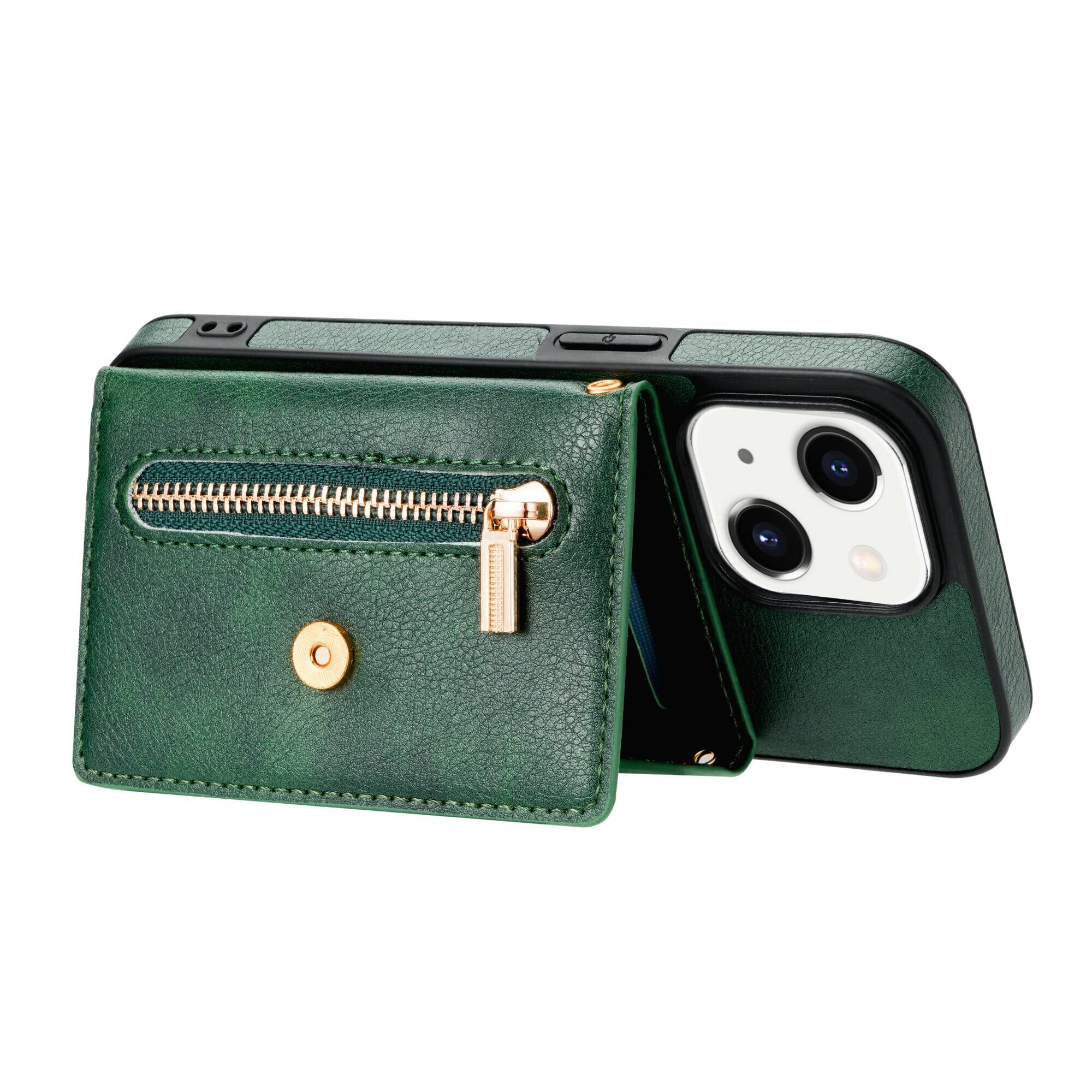 Eastwave アイフォン 13 Mini ケース ショルダー クロスボディ手帳型 iPhone 13mini 縄掛けカバー 手帳 iphone13mini ケース CASE 長ストラップ 肩がけ 首掛け 斜め掛け チェーン ファスナー型 携帯カバー 5色 グリーン