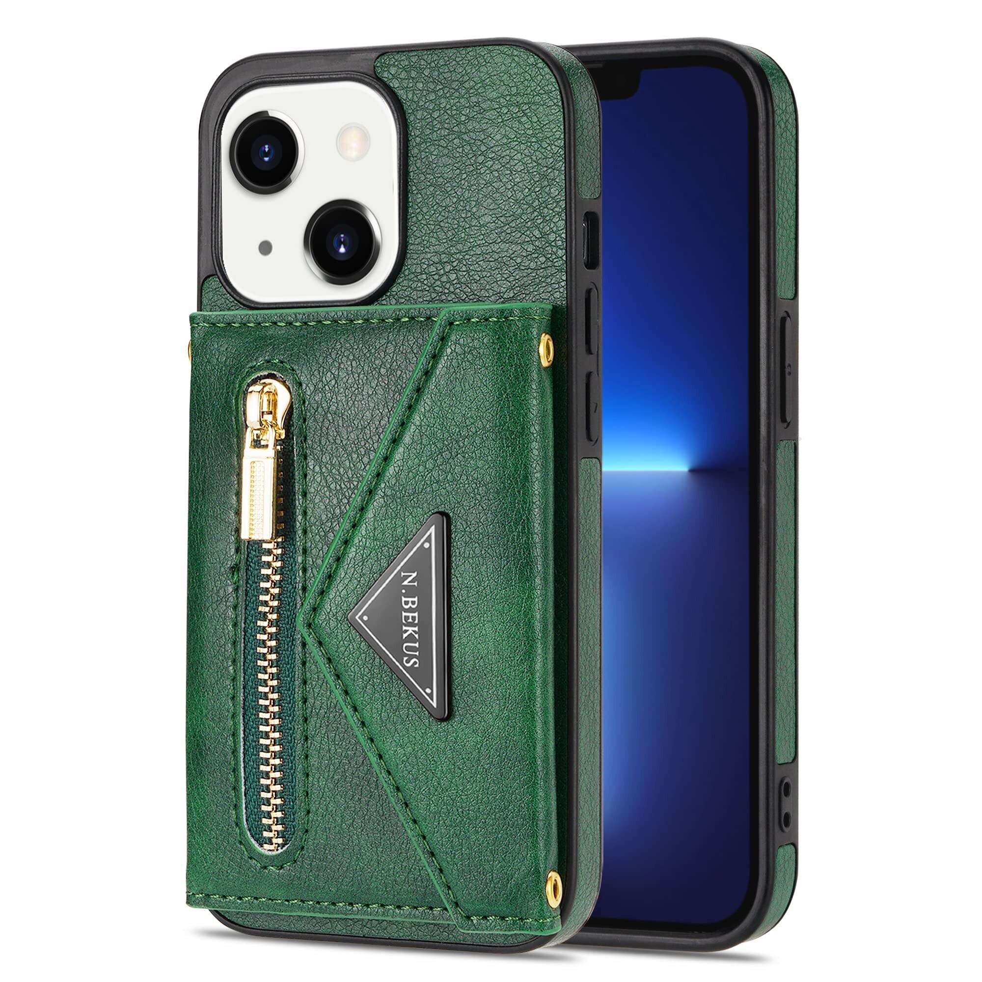 アイフォン 13 Mini ケース ショルダー クロスボディ手帳型 iPhone 13mini 縄掛けカバー 手帳 iphone13mini ケース CASE 長ストラップ 肩がけ 首掛け 斜め掛け チェーン ファスナー型 携帯カバー 5色 グリーン