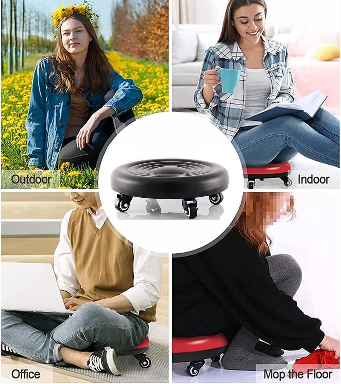 【適応性と実用性】室内移動作業,自動車整備、バイク整備、自転車整備など/低作業がラクになるキャスター付きの作業椅子。柔らかいガレージスツールは、ヨガ、車の修理、膝のエクササイズ、腕立て伏せ、床の掃除、ホームオフィスの労働者などに使用できます。地面にいるときに床を掃除したり、座って床から物を拾ったり、マニキュアをしたりするのに役立ちます。可動式ホイールスツールは、物、家具、植物などを運ぶためにも使用できます。
