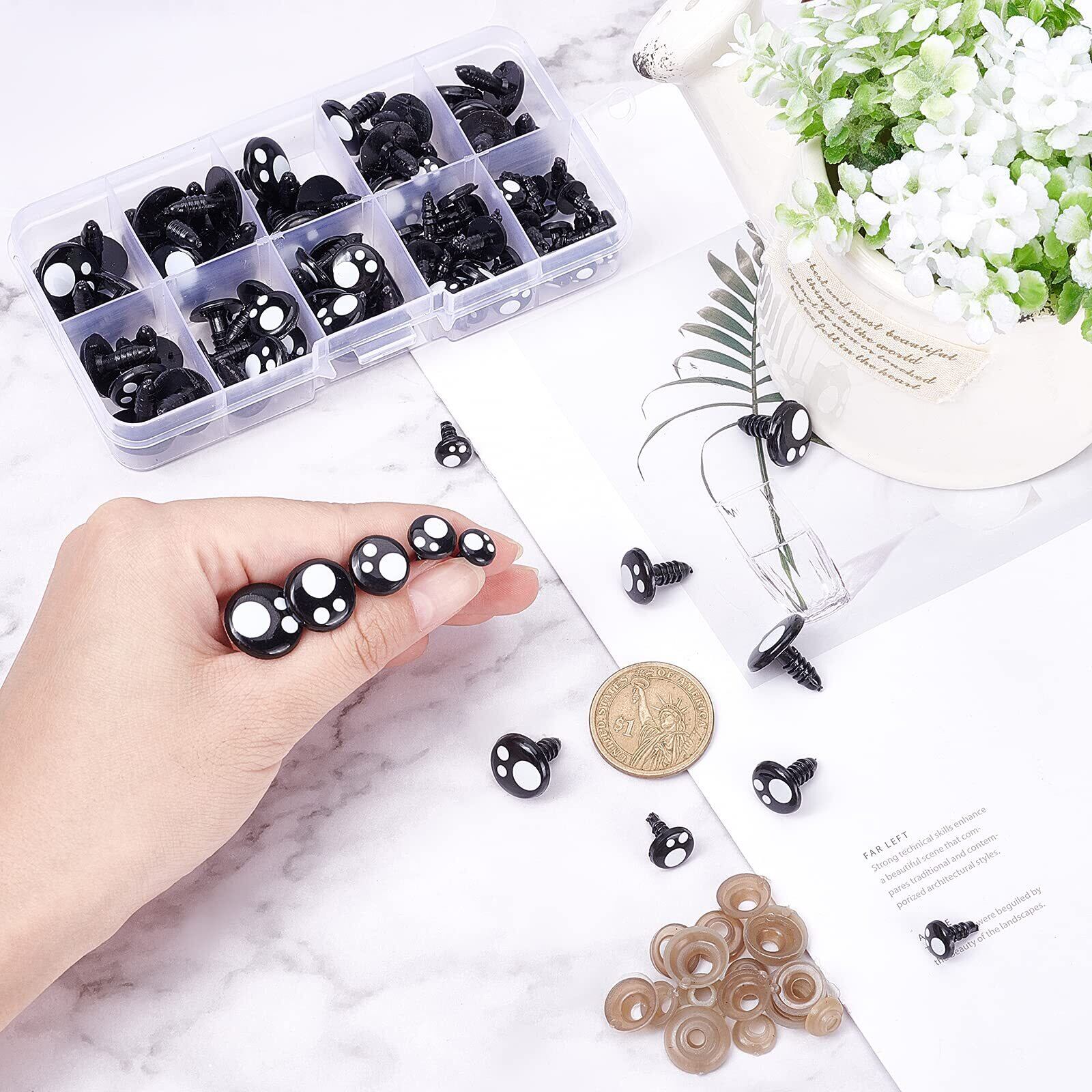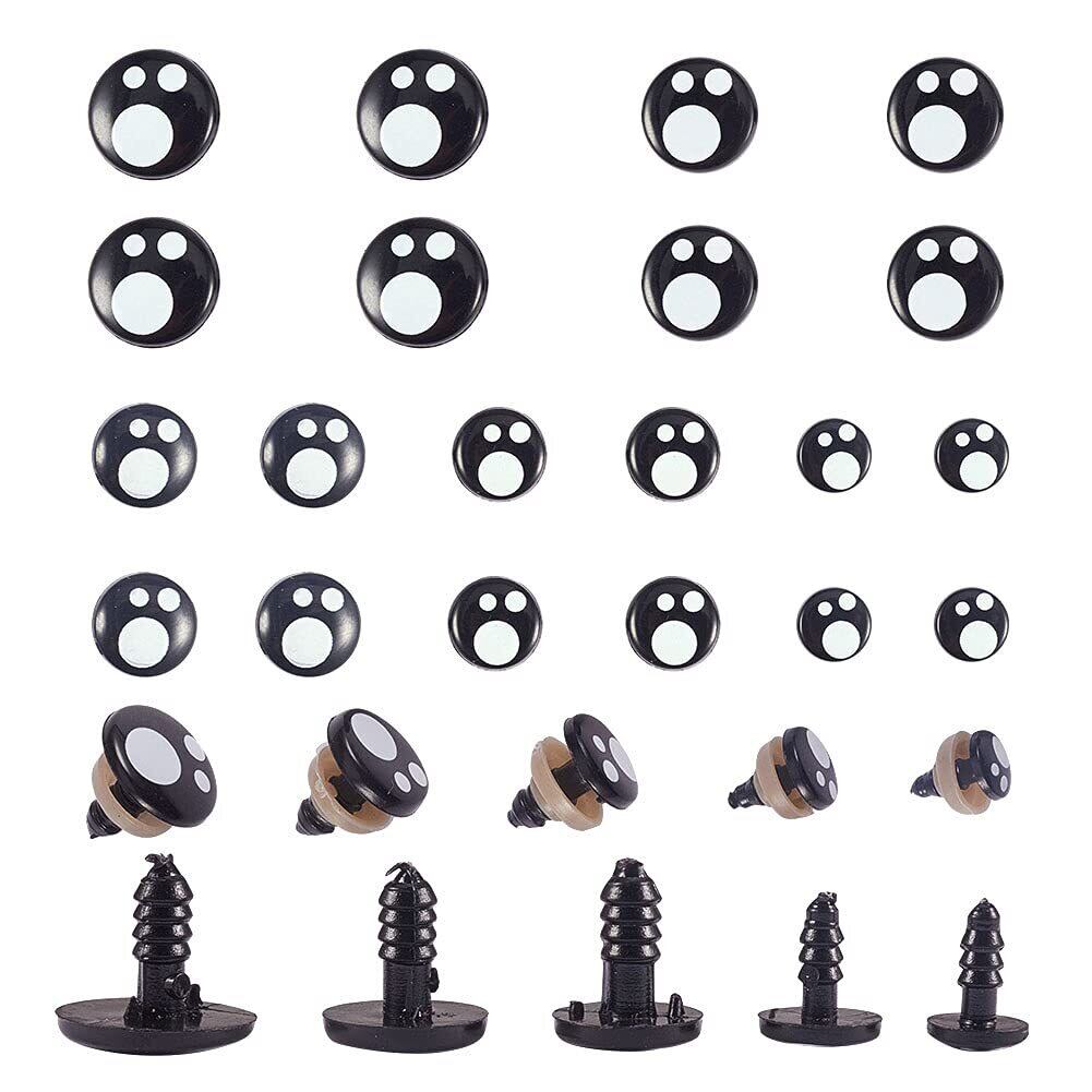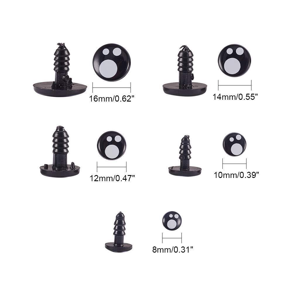 PH PandaHall 100個セット ぬいぐるみ目 さし目 生き生き 人形 ドールアイ 手作り目 プラスチックの目 動物 アイ クラフト ドールメイキング DIY用 手芸 パーツ 材料 ハンドメイド 素材 縫製 ブラック 8mm 10mm 12mm 14mm 16mm