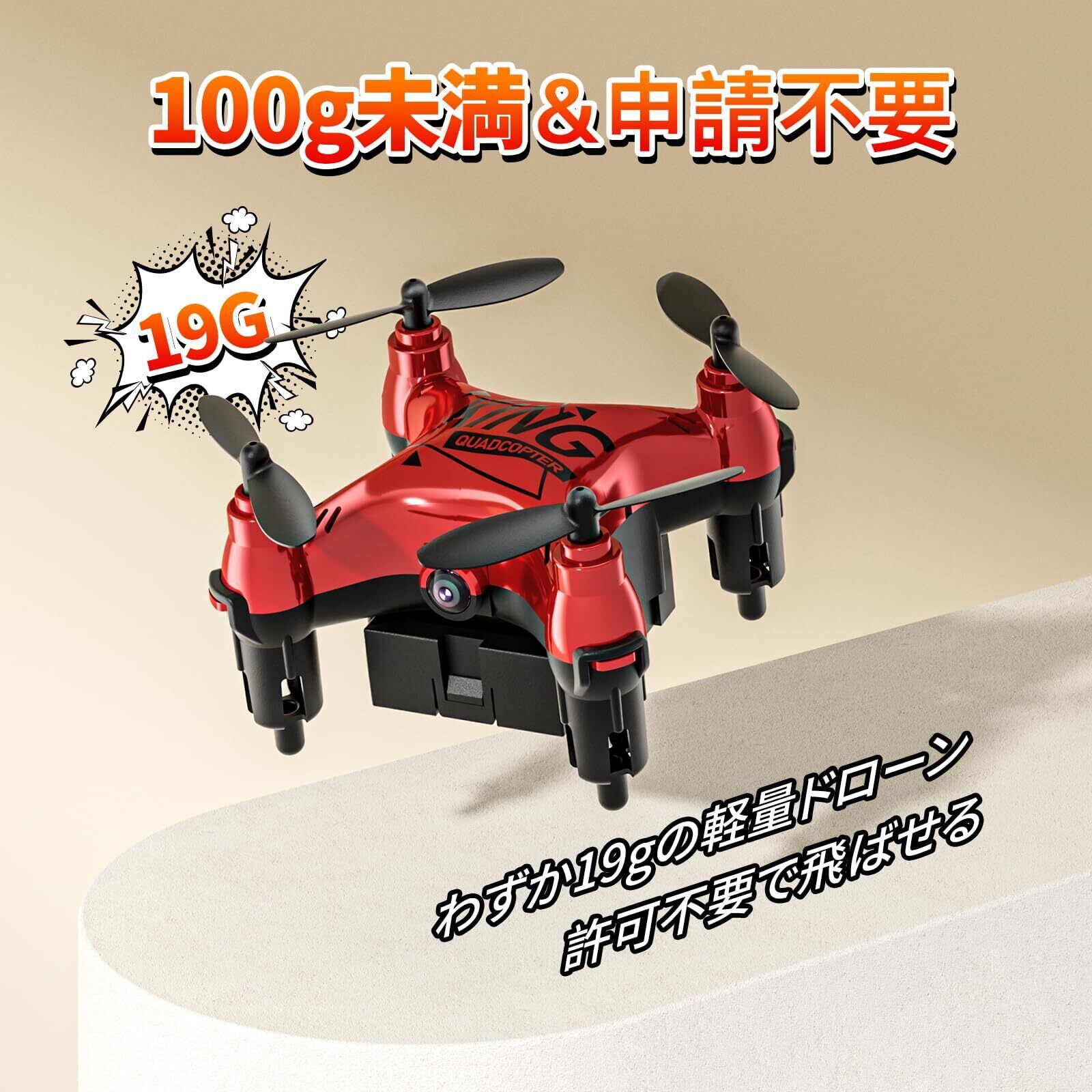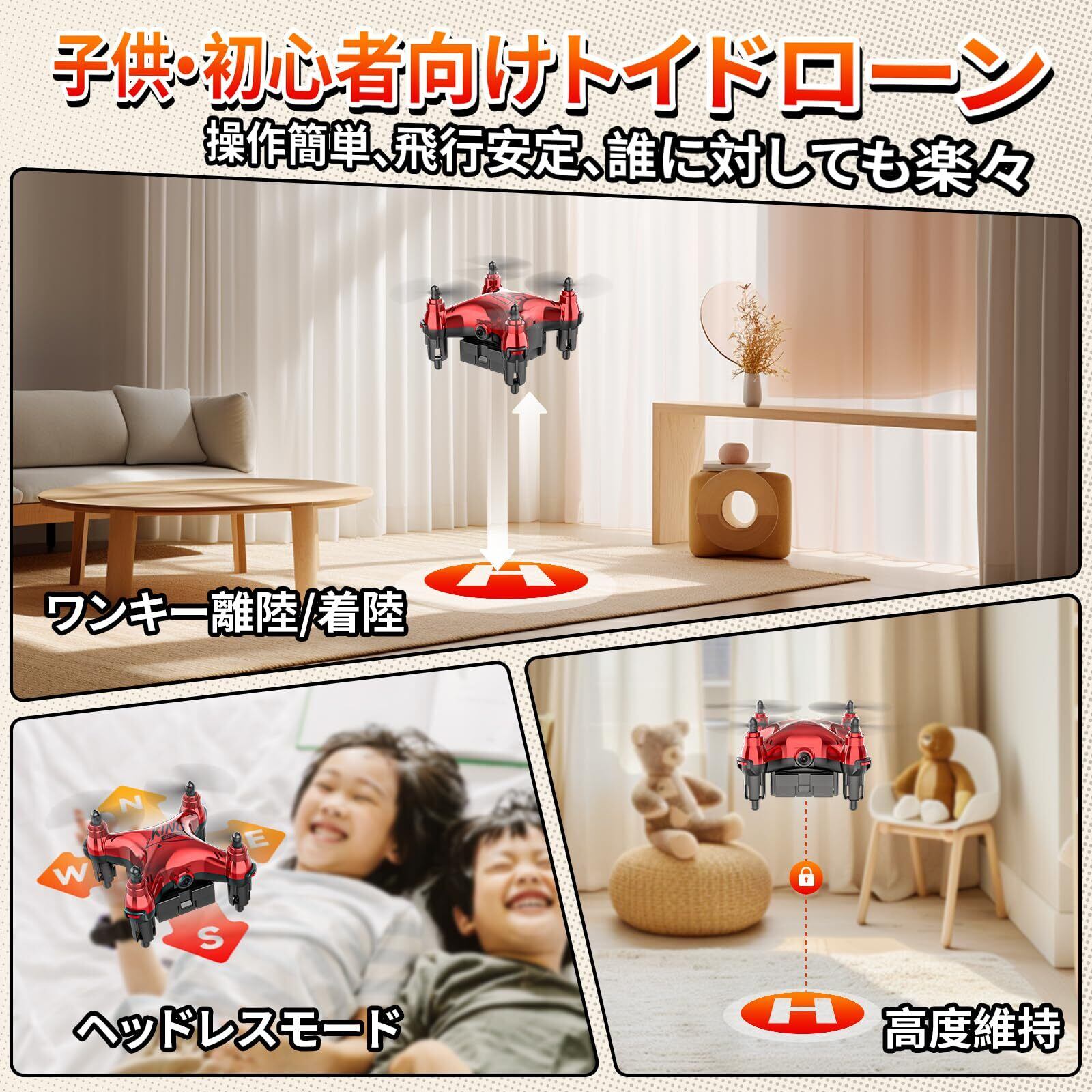 ドローン 100g未満 こども向け Holyton ミニドローン バッテリー3個 飛行時間24分 プロペラガード付き 小型 室内 初心者向け 高度維持 ヘッドレスモード ワンキー後退 プレゼント 子供 国内認証済み 2.4GHz 誕生日ギフト HT02 (緋) アップグレード