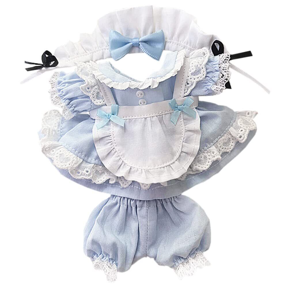 niannyyhouse 15cm ぬいぐるみ 用 メイド服 ヘアバンド ドレス エプロン ショートパンツ 着せ替え 綿人形服 (light blue)