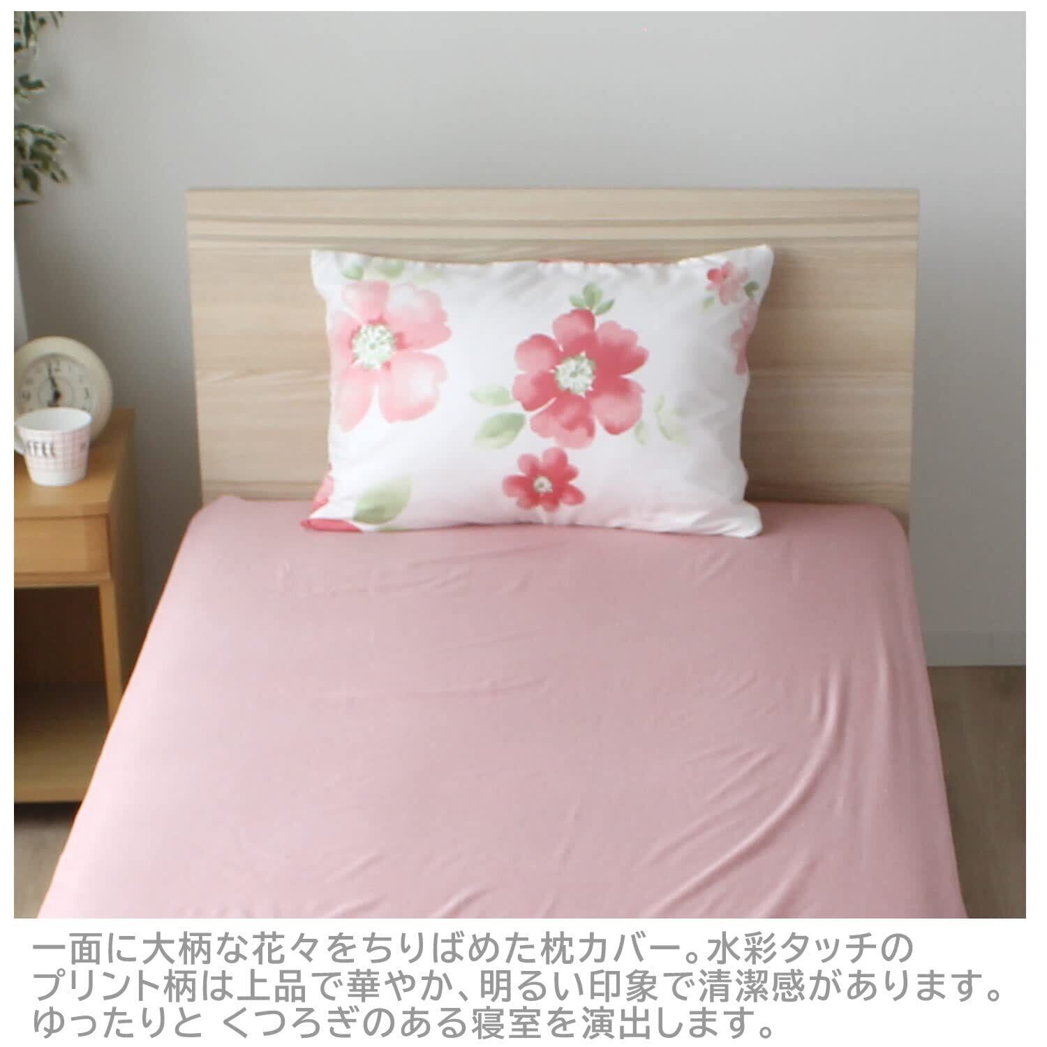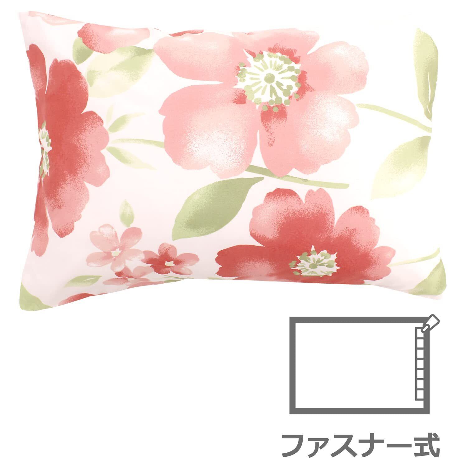 メリーナイト(Merry Night) 枕カバー 「水彩フラワー」 ピンク 約43×63cm ファスナー式 まくらが入れやすい 洗える 速乾 シワになりにくい FF16113-16