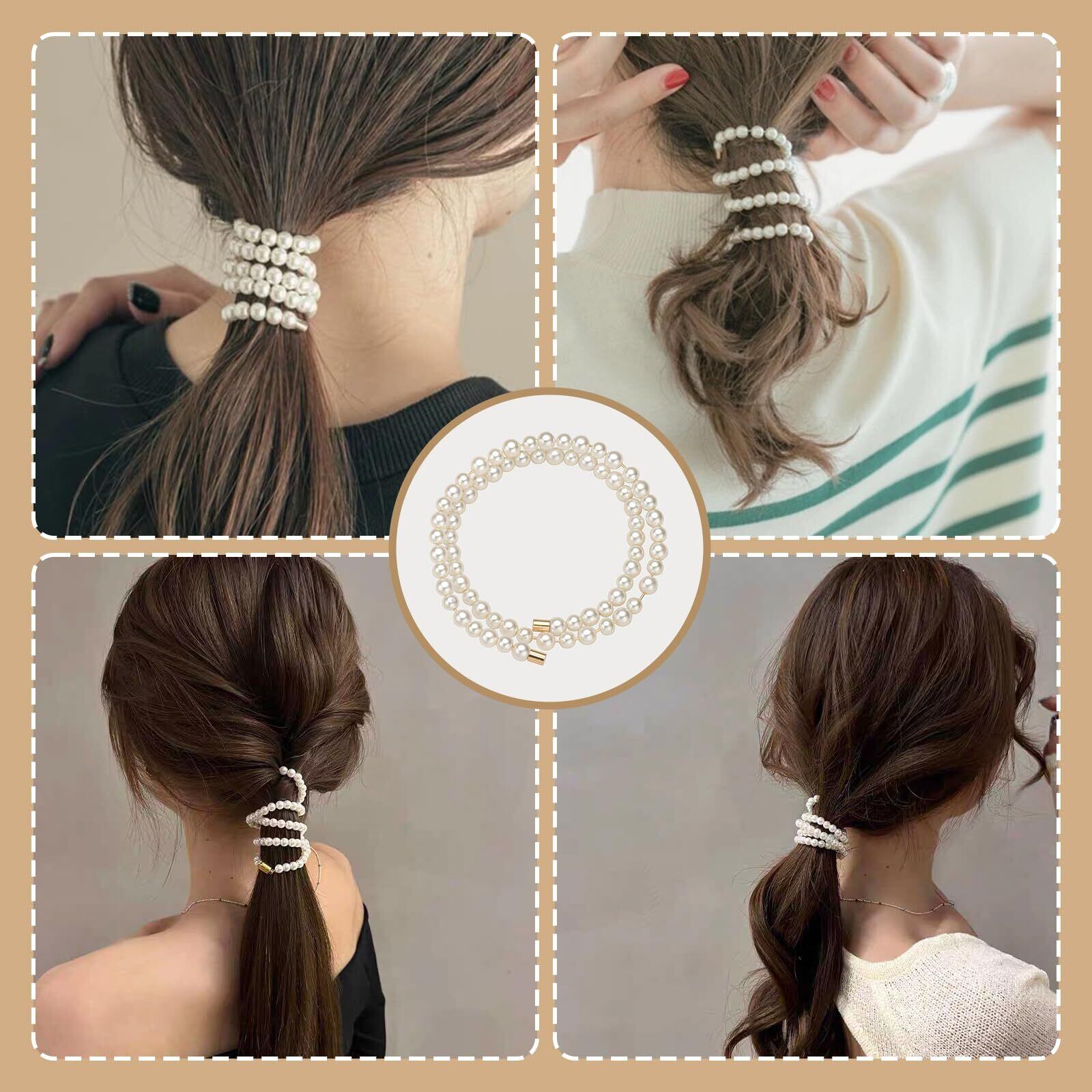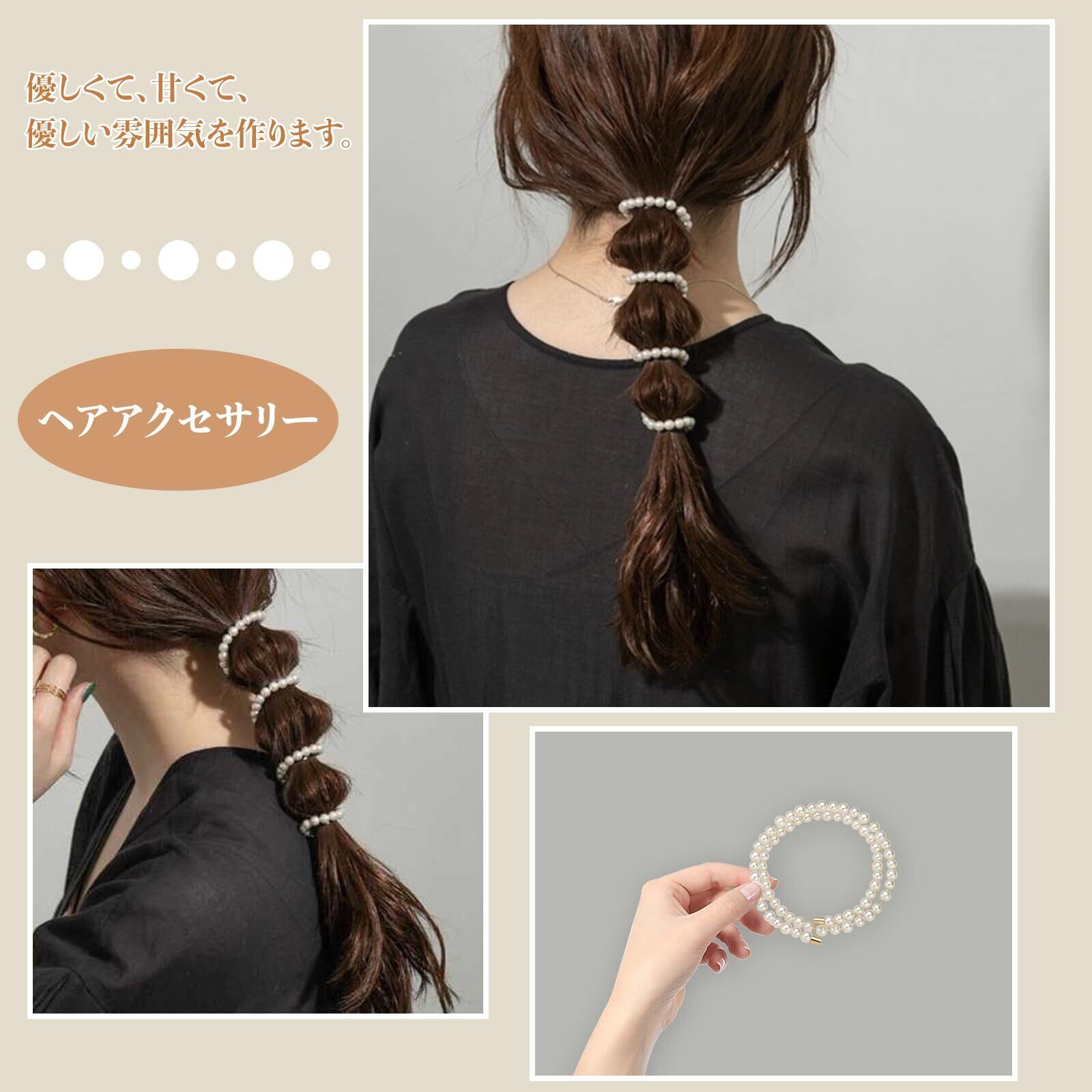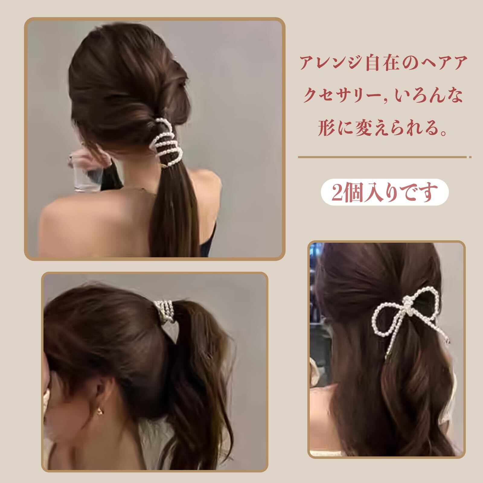 パール 髪飾り (2個セット) ヘアアクセサリー ヘアゴム ワイヤーポニー ヘアワイヤー アレンジワイヤー ヘアゴム 簡単ヘアアレンジ アレンジ自在 紐 おしゃれ 人気 レディース