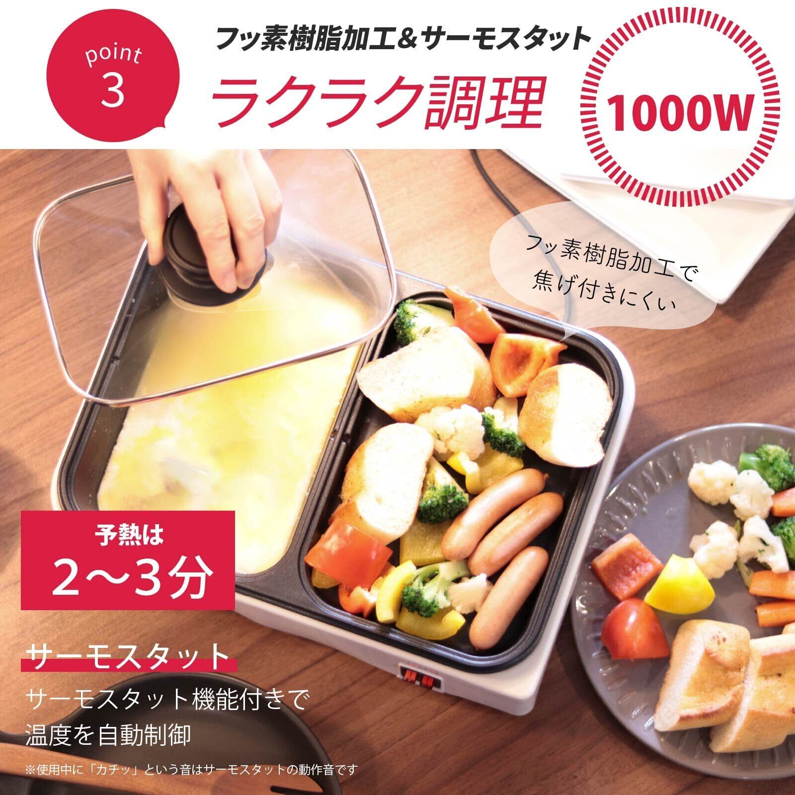 オーム(OHM) 電機 ホットプレート 2WAY 鍋付き 1人用2人用 深鍋&平面プレート 煮ると焼くが一度にできる おひとり様グリル鍋 小型 ミニ 一人暮らし おしゃれ シンプル ホワイト COK-YH100B-W 08-1209