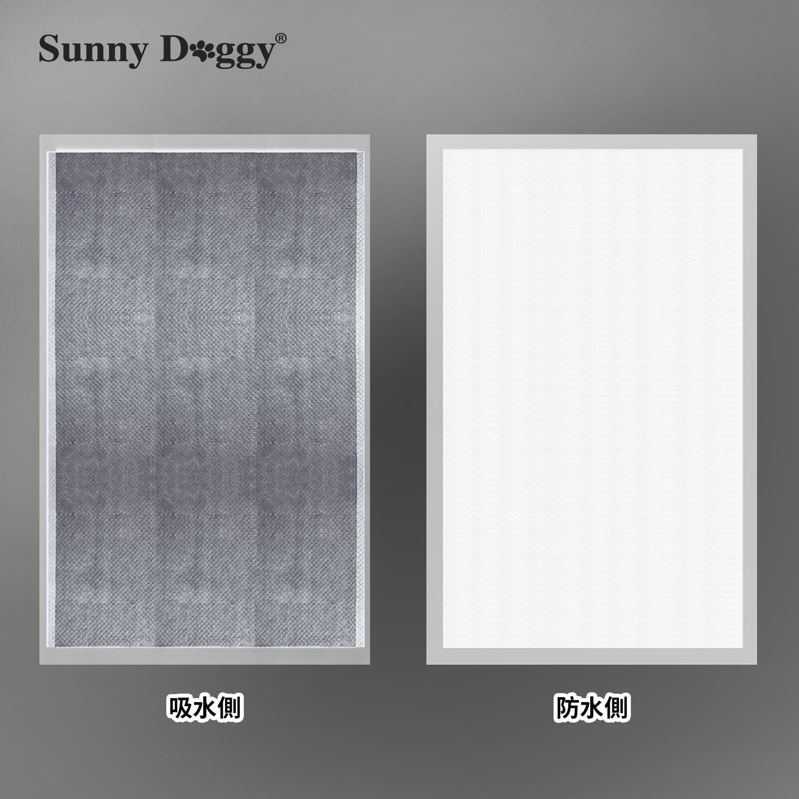 【足濡れず】本おしっこシートは逆戻り防止のデザインがあって、シートに触ってもサラっとしていて、シーツの上で動き回ってもヨレにくい。ワンちゃんが足濡れずにサラサラ!