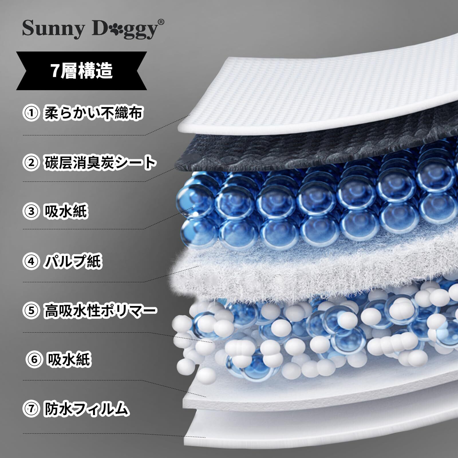 【7層構造】トイレシートは7層構造を採用します。柔らかい不織布はワンちゃんにやさしい、炭シートは有効に消臭、吸収ポリマーと綿状パルプはおしっこをしっかり吸収、防水フィルムがモレを防止できます。ワンちゃんの生活を守ります!
