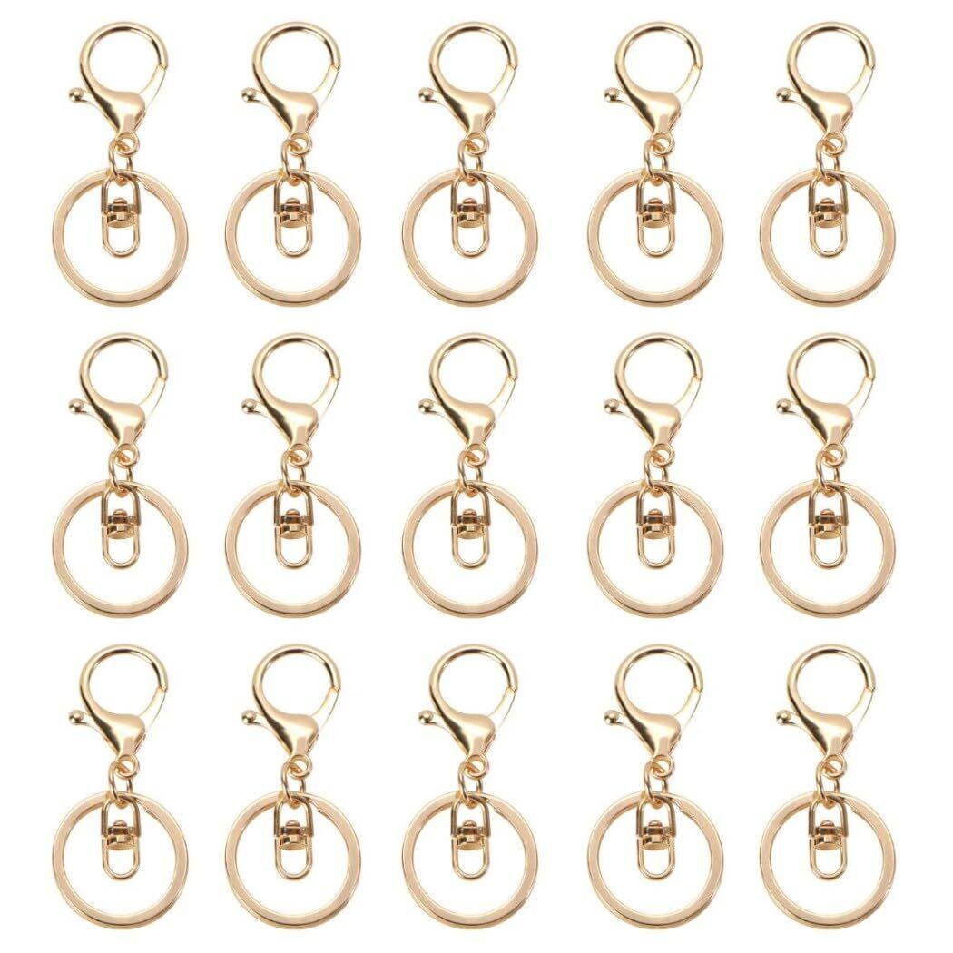 ナスカン ゴールド 15個セット アクセサリーパーツ キーホルダー金具 キーリング 回転フック付き (ゴールド)